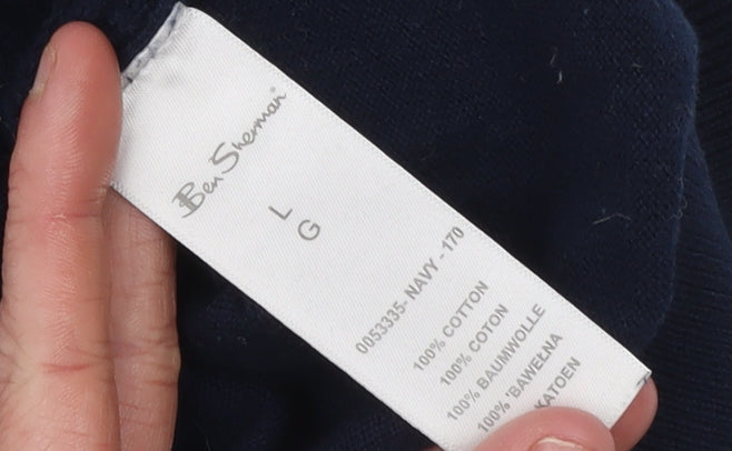 Men's Blue Cotton Crew Neck Knit Jumper Size L