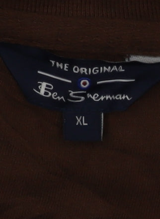 This Ben Sherman Unisex Adults T-Shirt offers simple, effortless style with a classic and authentic edge. Crafted from 100% cotton jersey, it ensures soft comfort, breathability, and an easy fit for everyday wear. The rich chocolate brown tone provides a versatile base that pairs effortlessly with jeans, chinos, or shorts, making it a wardrobe essential for casual days and relaxed evenings alike. Designed in a traditional crew neck with short sleeves, this top upholds Ben Sherman’s well-known quality and understated aesthetic. The cotton fabric offers durability and natural softness, while the lightweight feel makes it ideal for spring, summer, and early autumn wear. This top features subtle tonal Ben Sherman branding, adding a discreet touch of class to an otherwise minimalist design. Being a regular fit in size XL, it allows for easy movement while maintaining a flattering silhouette. The pullover closure highlights its laid-back convenience and casual comfort, perfect for everyday outings, weekend relaxation, or layering under jackets. In very good pre-loved condition, with light creasing that will smooth out once washed and pressed, this T-shirt is an excellent choice for those seeking reliable, timeless style with a premium finish. Whether you’re out for a stroll, meeting friends, or enjoying a comfortable day indoors, this Ben Sherman piece combines quality craftsmanship with a relaxed, iconic British touch. This is a staple item ready to refresh any casual wardrobe, offering both simplicity and enduring wearability. A superb value find for those who appreciate authentic, comfortable cotton attire from a trusted brand.