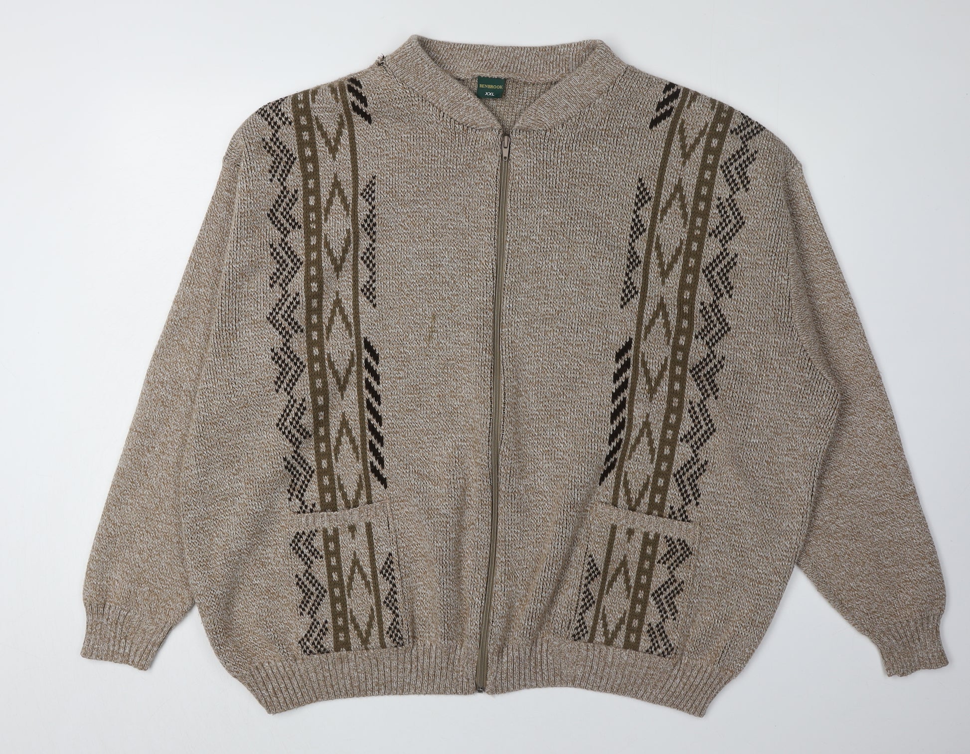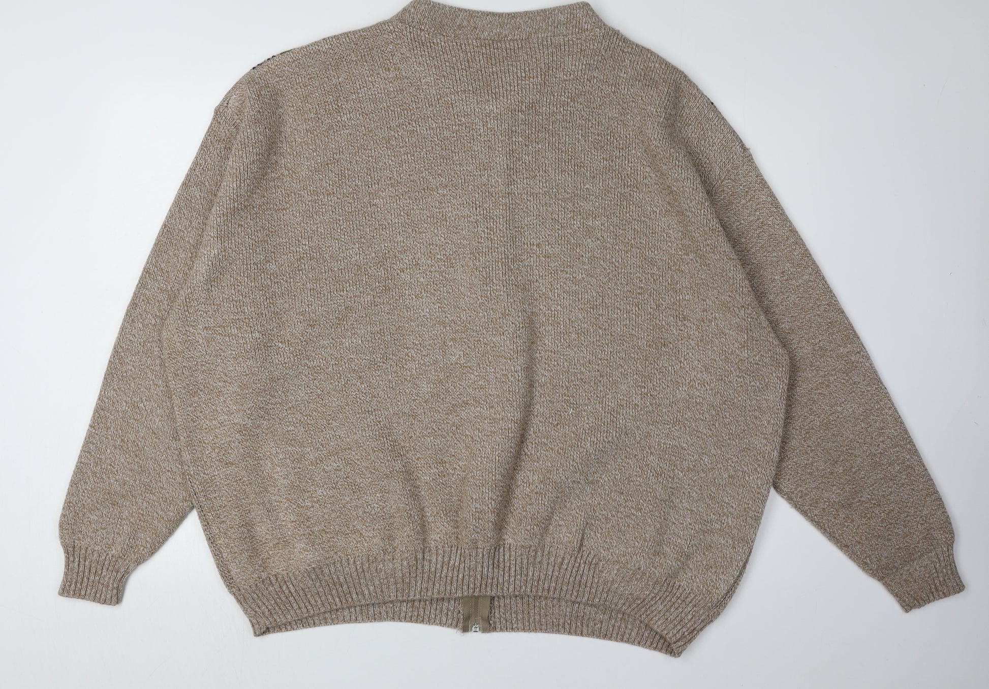 Step into cosy style with this Benbrook Men's Full Zip Cardigan, perfect for adding a versatile layer to your autumn and winter wardrobe. Designed for casual days and leisurely outings, this jumper is crafted in a soft, chunky-knit fabric that effortlessly combines warmth and comfort. Showcasing a stylish geometric pattern, it brings a touch of modern sophistication to any outfit. Featuring a full zip closure for convenience, this cardigan is poised to be your go-to piece, with practical pockets adding to its functional appeal. The neutral beige hue makes it easy to pair with your favourite jeans or trousers, ensuring you’re always dressed to impress, whether relaxing at home or stepping out for a casual meet-up. Made from a blend of 80% acrylic and 20% cotton, this 2XL jumper is designed to provide a snug, regular fit that envelops you in comfort. The durable knit ensures long-lasting wear, while the soft texture offers an inviting touch against your skin. Although it shows a small snag on the front, this piece is in good condition, promising excellent value. Priced competitively, this cardigan invites you to embrace the essence of effortless style and comfort.