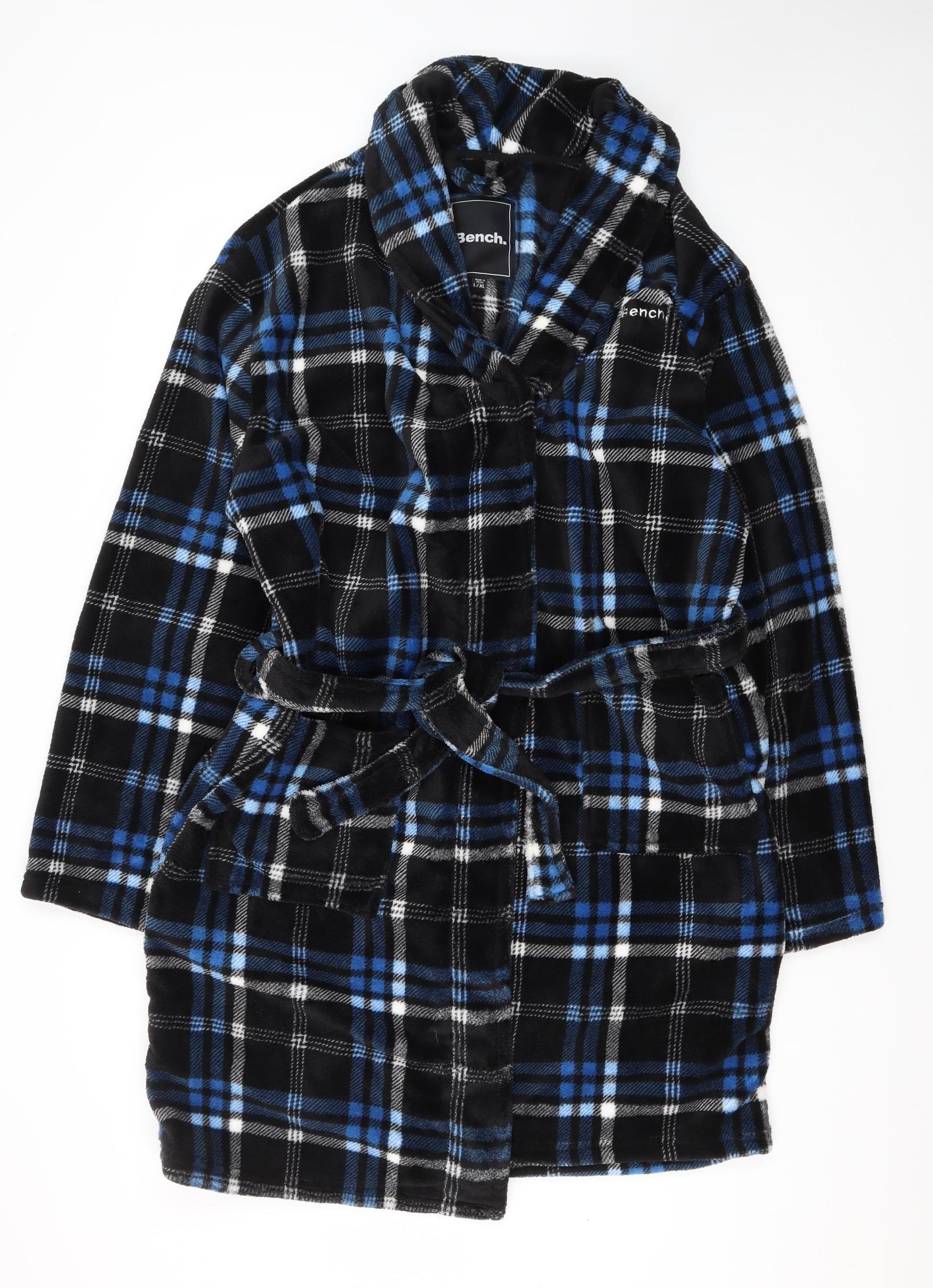Indulge in warmth and comfort with the Bench Men's Black Plaid Fleece Robe, available in size L/XL. Perfectly suited for the winter season, this robe is a must-have for any man looking to stay cosy during the colder months. Its classic plaid pattern, crafted in a soft, luxurious fleece fabric, will envelop you in warmth. The robe features a belted closure for an adjustable fit and a shawl neckline adding a touch of class. Moreover, it is machine washable for easy care, ensuring continual comfort with minimal fuss. This stylish robe is part of the Bench collection, known for its high-quality urban wear. It offers functionality without compromise on style, making it a versatile addition to your nightwear collection. Despite being in excellent condition, there are no signs of wear, maintaining the garment's charm and durability. Whether lounging around the house or winding down after a long day, this robe promises comfort and sophistication. Don't miss out on adding this practical yet stylish piece to your wardrobe. It's perfect for keeping warm at home or as a thoughtful gift for someone special.