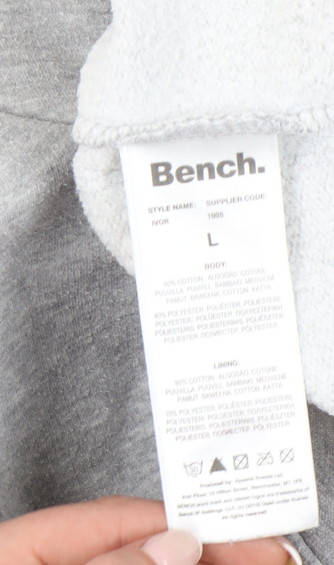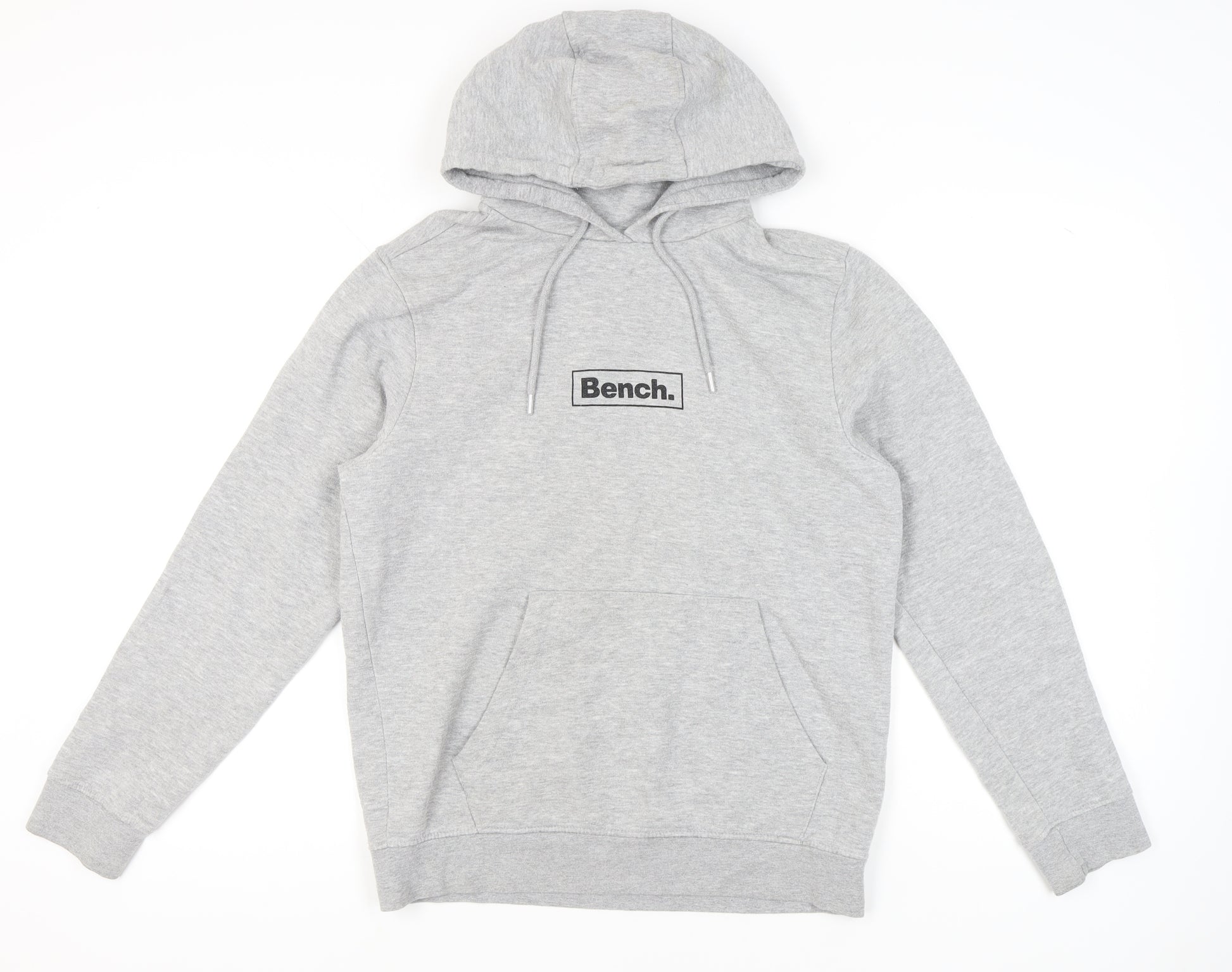 This Bench men’s grey pullover hoodie is the perfect blend of comfort, practicality, and modern streetwear style. Designed in a classic grey tone, the hoodie features a bold Bench logo across the chest, giving it a timeless branded look that appeals to casualwear enthusiasts. Made from a durable and comfortable fabric blend of 60% cotton and 40% polyester, this hoodie offers both softness and resilience, ensuring it stands up well to regular wear while keeping you warm in cooler months.The hoodie has a practical pullover style with long sleeves and a crew neckline, supported by a drawstring hood to provide adjustable protection against the elements. Ideal for layering, it also includes a spacious front kangaroo pocket for added function and casual convenience. Designed with a regular fit, it offers a relaxed silhouette without being oversized, making it a versatile staple suitable for everyday wear.This hoodie works well across multiple seasons – from brisk autumn evenings to chilly winter days, and even spring mornings when an extra layer is welcome. Its fleece fabric type and breathable cotton blend combine to provide comfort while still being durable enough for casual sports, gym sessions, and everyday use. Whether paired with jeans, joggers, or sportswear, it offers a refined yet laid-back look.Though pre-owned, this hoodie remains in very good condition, with only light signs of wear such as slight cracking on the interior label print, but no major defects. For someone seeking a trusted and quality casual hoodie at great value, this Bench pullover is an excellent choice.Perfect for men who appreciate reliable, stylish hoodies with branded detailing, this piece is machine washable, making it easy to care for and maintain. A versatile addition to any wardrobe, this hoodie is ideal for casual outings, training, or simply enjoying at home in comfort.Don’t miss the chance to secure this Bench men’s grey hoodie – a wearable wardrobe essential that balances style, comfort, and practicality.