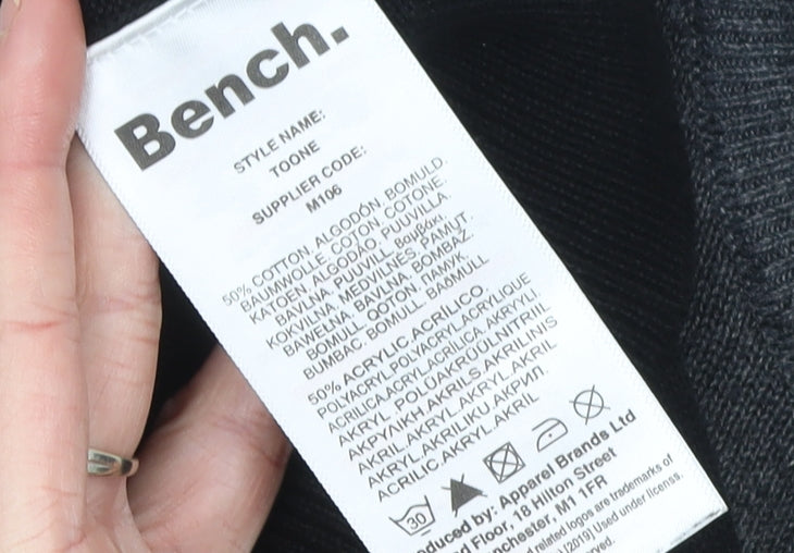 This Bench men’s jumper in size L is a stylish and comfortable piece, perfect for casual wear through the cooler months. Crafted from a soft and durable 50% cotton and 50% acrylic blend, it offers a lightweight yet warm feel, ideal for layering or wearing on its own. The colour-block design combines black, dark grey, white, and deep red stripes that give it a modern and sporty edge, while the small Bench logo accent near the waist adds a subtle branded touch. The classic crew neckline and regular fit make it a versatile piece to pair with jeans, chinos, or casual trousers. Designed in a tight-knit fabric, this jumper provides both comfort and breathability, suitable for all seasons, particularly autumn, spring, and winter. The long sleeves and ribbed cuffs ensure a neat fit at the wrists and waist, keeping the shape over time. Made to a high quality standard by Bench, a trusted UK brand known for its durable and streetwear-inspired designs, this pullover combines practicality with everyday style. The jumper remains in excellent pre-owned condition, showing only light signs of wear with no visible marks or defects, making it a great value addition to your wardrobe. Versatile, comfortable, and effortlessly fashionable, this Bench jumper is a go-to option for anyone seeking a smart yet relaxed look for casual weekends, meetups, or travel. Ideal for men who appreciate understated style and quality craftsmanship, this knitwear piece balances warmth and breathability while maintaining a flattering shape. Elevate your wardrobe effortlessly with this well-made, easy-to-style jumper from Bench – a staple for the modern man looking to combine comfort and casual fashion with timeless appeal.