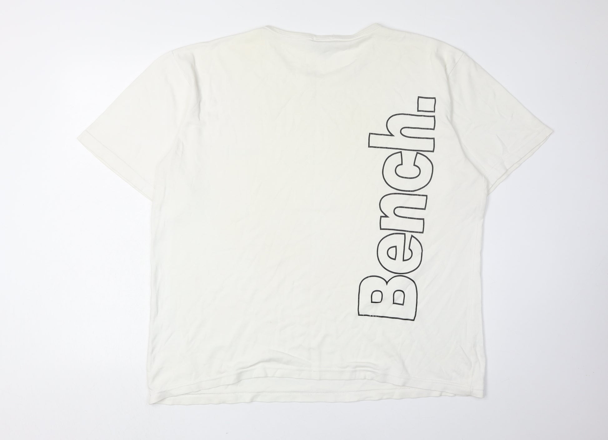 Embrace effortless style with this Bench Men's White Logo T-Shirt in a comfortable 2XL size. Crafted from soft and breathable 100% cotton jersey fabric, this tee promises a regular fit that is perfect for everyday wear. Its classic crew neck design and short sleeves deliver a timeless look, easily pairing with a variety of outfits. The t-shirt features a prominent Bench logo, adding a stylish accent that enhances its solid white colour. Ideal for all seasons, this versatile piece can be layered or worn on its own, making it a wardrobe staple. Although in very good condition, please note a small stain on the front that does not detract from its overall appeal. Perfect for casual outings or lounging at home, elevate your fashion game with this iconic Bench t-shirt. Machine washable for convenience, this tee is easy to care for and maintain. Don't miss out on adding this essential item to your collection today.