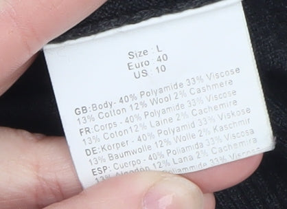 Womens Black L Knit Pullover Jumper Long Sleeve Round Neck