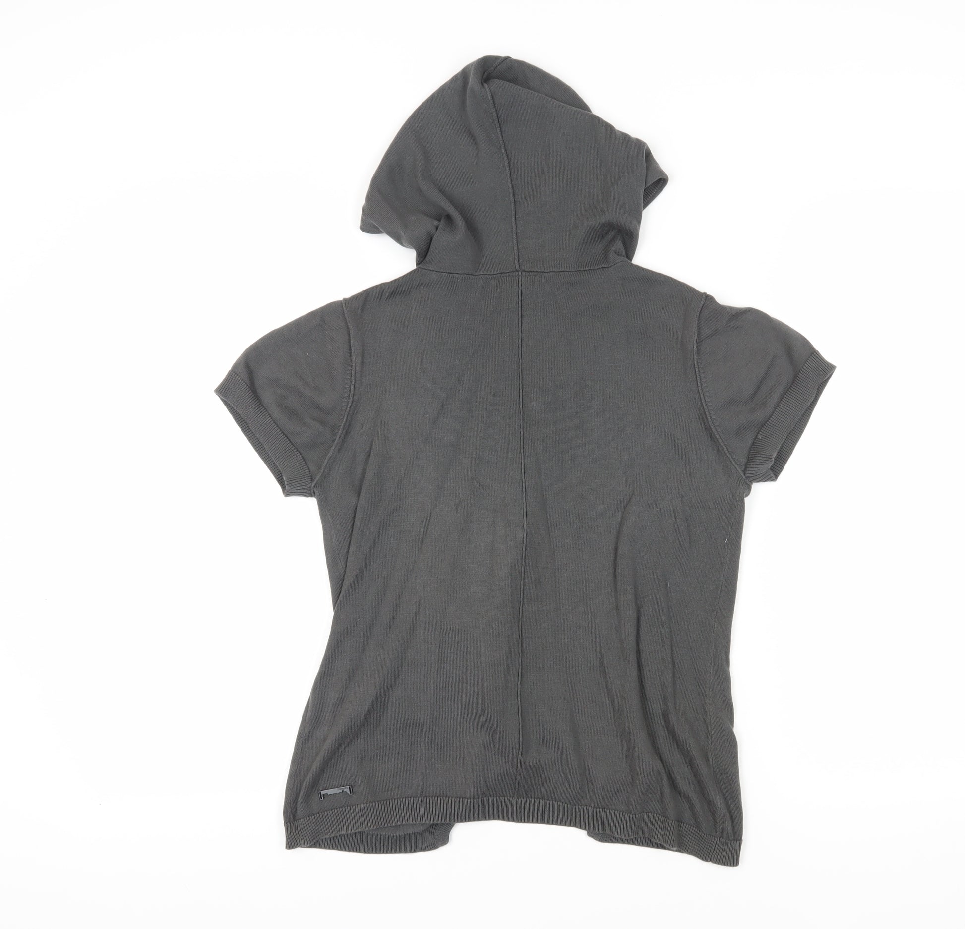 Discover this chic Bench wrap hoodie, perfect for those casual outings. Crafted from 100% cotton, it promises comfort with every wear. The V-neck design paired with a functional zip closure adds a modern twist to the traditional hoodie, while the hood offers utility on breezy days. Its sleek black colour makes it versatile, easily pairing with any casual ensemble. The short sleeves and lightweight knit fabric are ideal for spring and summer days, ensuring you stay cool and stylish. Whether you're out for a stroll or meeting friends, this hoodie is your go-to for an effortlessly put-together look. Embrace the logo accent that subtly speaks of authenticity and style. Machine washable, it's easy to keep this hoodie looking fresh and new. Despite some light wear and a few spots, it retains its charm, making it a valuable addition to your wardrobe.
