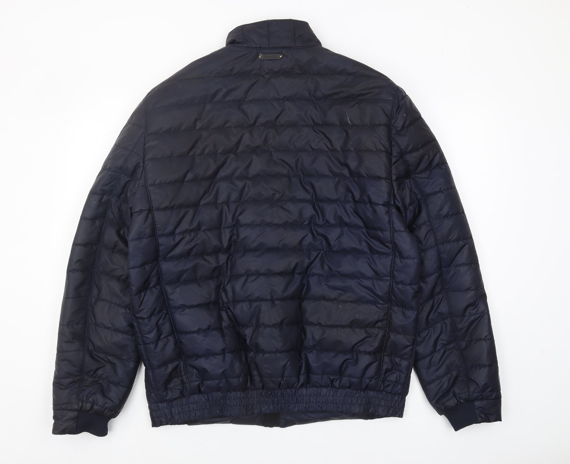 Stay warm and stylish with this Benetti men's puffer jacket in a versatile blue hue. Perfect for the colder months of autumn and winter, this jacket ensures you stay insulated with its polyester outer shell and lining. Designed in a regular fit for easy layering, it comes in XL size, fitting comfortably while providing ample room for movement. Featuring a stand-up collar and a full zip closure, this jacket is both functional and fashionable. Additional features include zipped pockets, ideal for securing essentials or keeping hands cosy. Whether you're heading out for a casual evening stroll or tackling your daily errands, this jacket's lightweight construction makes it a practical choice. The understated logo accent adds a touch of brand recognition without being overwhelming. Machine washable for easy care and maintenance, this jacket is an excellent addition to any wardrobe looking for a perfect blend of warmth, style, and durability.