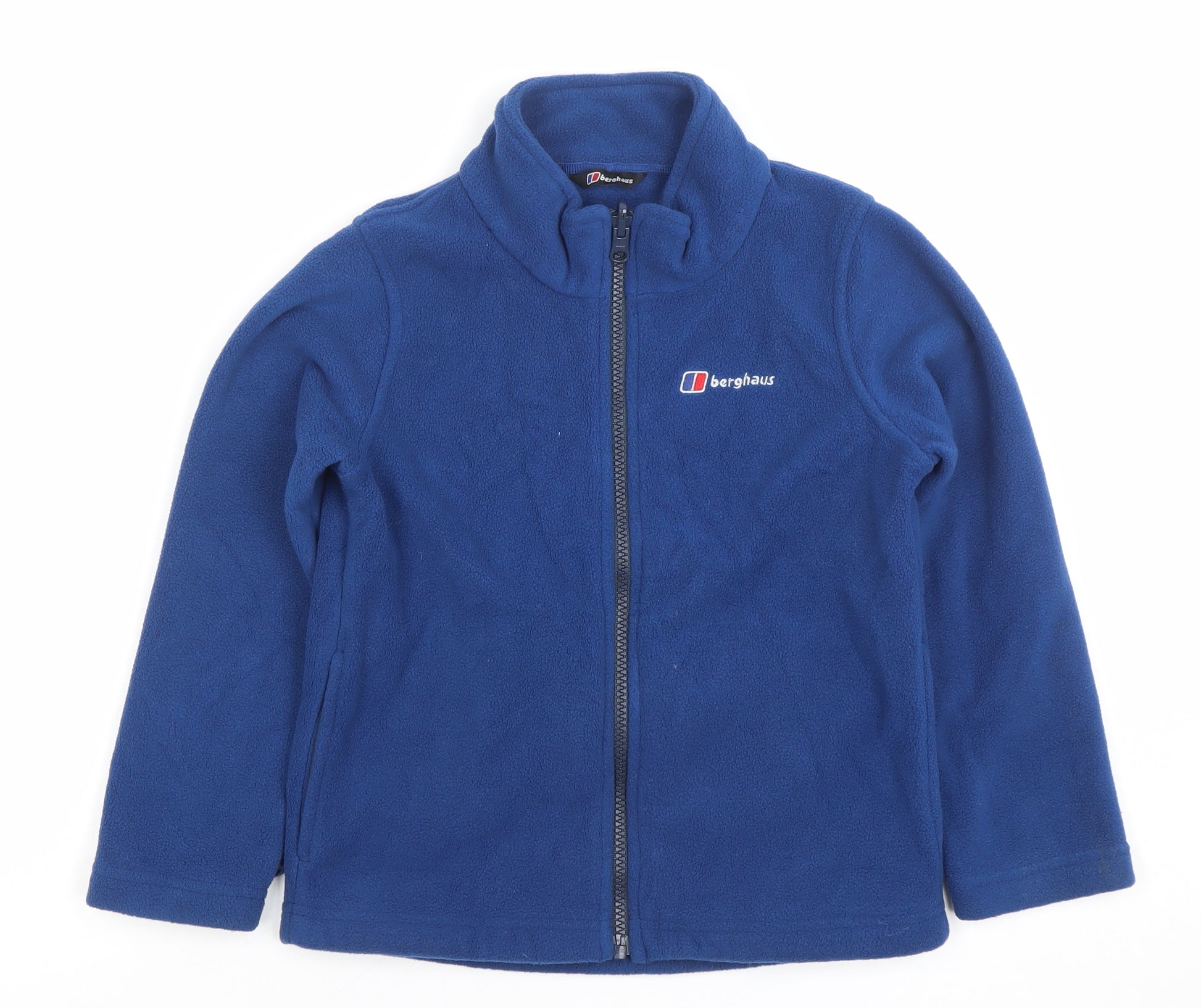 Keep your young explorer warm and comfortable with this high-quality Berghaus Boys Blue Fleece Jacket, perfect for everyday adventures, outdoor play, and school trips. Crafted from 100% polyester fleece, this jacket offers a lightweight yet cosy feel, ideal for layering during the cooler months of autumn, winter, and spring. The rich blue colour gives it a classic outdoors look, while the embroidered Berghaus logo on the chest adds a touch of authentic outdoor style. The full-zip front makes it easy for little hands to put on and take off, while the soft collar helps keep the warmth in. Designed with practicality in mind, this fleece is both breathable and quick-drying, making it an excellent choice for active youngsters. It provides reliable warmth without the bulk, ensuring comfort whether worn under a coat or as a standalone piece on milder days. The regular fit allows freedom of movement, perfect for climbing, running, and exploring with confidence. In very good pre-loved condition, this jacket shows minimal signs of wear, maintaining its soft texture and bright appearance. It has no visible stains, marks, or defects, and the sturdy zip closure remains fully functional. Easy to care for, it’s machine washable for stress-free maintenance. Available in UK size 5-6 Years, it’s perfect for growing boys who love spending time outdoors. This versatile piece works well for casual wear, school, walking, or hiking, delivering lasting comfort and dependable warmth. With Berghaus’ reputation for durable outdoor gear, this fleece jacket makes an excellent addition to any young adventurer’s wardrobe — practical, stylish, and built for movement. Bring home dependable warmth and quality with this charming Berghaus boys' blue fleece today.