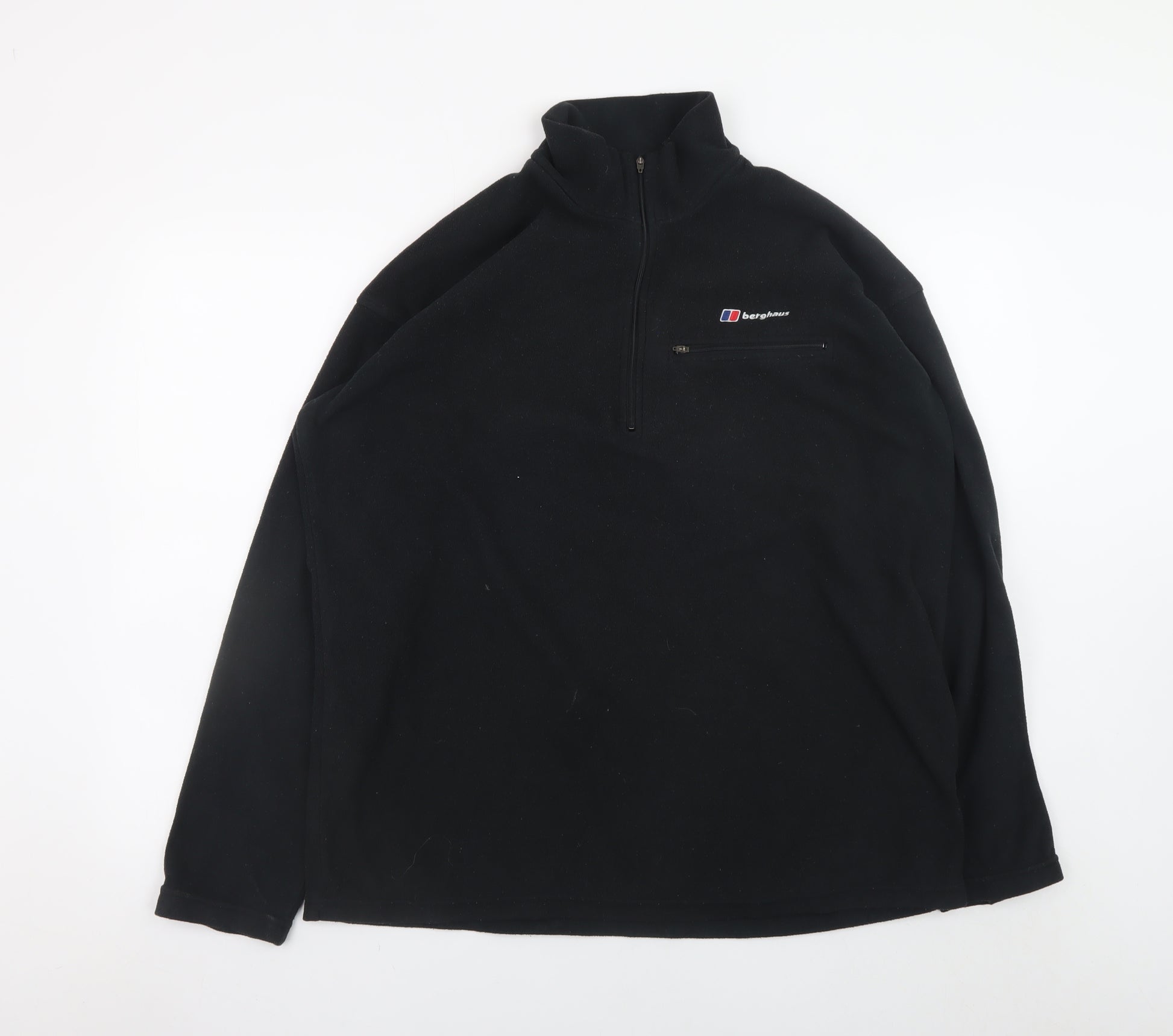 Stay warm and comfortable during your outdoor adventures with this Berghaus men's black fleece sweatshirt. Designed for performance and everyday wear, this pullover features a high neck with a convenient half zip closure, offering adjustable ventilation and easy layering. The Berghaus logo embroidered on the chest and the practical zip pocket add both style and functionality. Crafted from 100% polyester fleece, it delivers lightweight warmth with excellent breathability, making it ideal for use throughout the year, from cool spring mornings to crisp winter days. The regular fit ensures easy movement, while the soft fleece material feels cosy against the skin. Perfect for hiking, trekking, camping, or casual weekend wear, this versatile sweatshirt balances performance and comfort seamlessly. Its clean black colour and minimalist style make it easy to pair with anything from jeans to outdoor trousers, offering timeless appeal. In excellent pre-owned condition with only light signs of wear, this Berghaus fleece is a great addition to any wardrobe for those who value quality UK outdoor wear. A dependable piece built to withstand changing weather while keeping you warm and comfortable season after season.