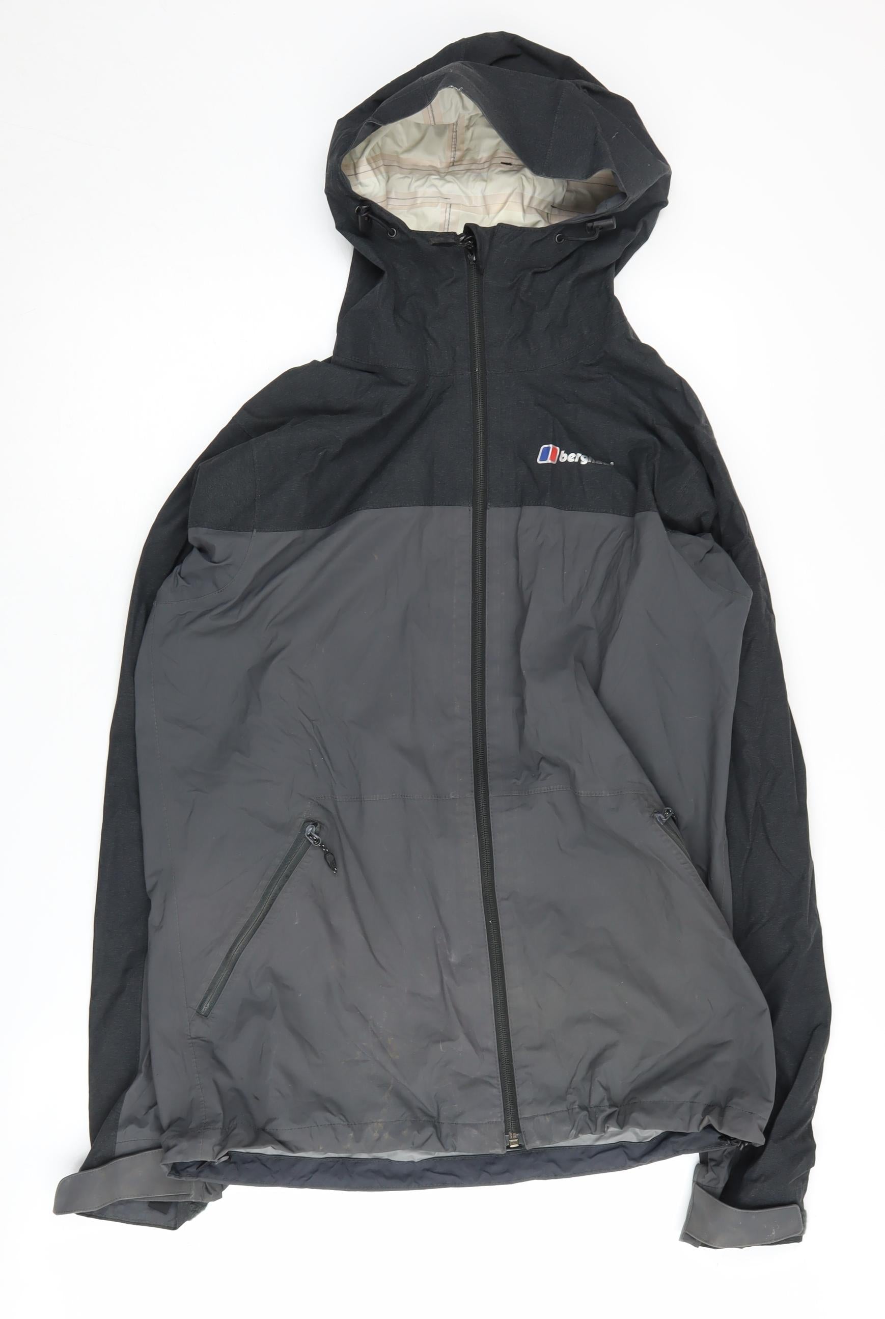 Explore the outdoors in style and comfort with this Berghaus Men's Hooded Windbreaker. This black jacket, sized small, is crafted from a blend of polyamide and polyester with a polyurethane coating, offering a durable and water-resistant shell perfect for unpredictable weather. It features a full-zip closure for easy wear and adjustable hood to keep you protected against the elements. Ideal for hiking and other outdoor activities, it combines functionality with a sleek design. Despite showing minor stains, its robust construction and iconic Berghaus logo make it a standout piece for casual outings and travel adventures during autumn and winter. The regular fit ensures comfort while being machine washable for easy care. Embrace the outdoors confidently with this essential outerwear.