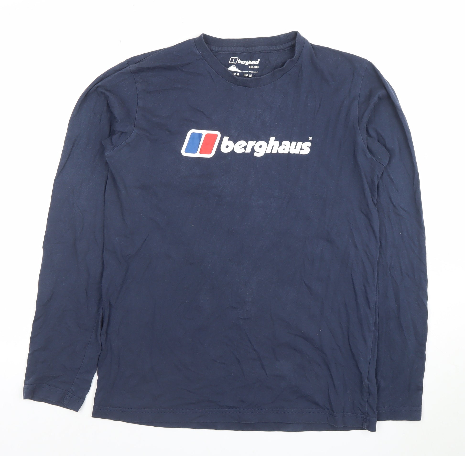 Upgrade your casual wardrobe with this classic Berghaus Men's Blue Long Sleeve Cotton Logo T-Shirt in size Medium. Crafted from 100% soft and breathable cotton, this T-shirt provides optimal comfort for everyday wear. The versatile crew neck design and regular fit ensure an easy, relaxed silhouette that suits various body shapes. The deep navy blue hue complements the iconic Berghaus logo printed on the chest, adding a subtle yet striking outdoor-inspired aesthetic that’s instantly recognisable. Perfect for layering or wearing solo, this long-sleeved T-shirt is ideal for hiking, travel, or laid-back weekends. Its solid colour and high-quality jersey fabric make it a timeless essential that pairs effortlessly with jeans or cargo trousers. Designed for durability and breathable performance, this top remains comfortable across seasons – keeping you cool in the summer and making an excellent base layer during colder months. The quality construction reflects the brand’s commitment to stylish yet practical apparel, suitable for men who value both performance and everyday comfort. Machine washable for easy care, this garment retains its fit and softness wash after wash. With only minimal signs of wear and gentle creasing, it remains in very good used condition. Whether you’re heading outdoors or relaxing indoors, this Berghaus T-shirt delivers dependable versatility and understated style. A trusted classic that combines simplicity, comfort, and the quality craftsmanship expected from Berghaus, making it an excellent addition to any wardrobe.