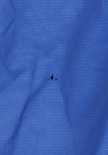 This Berghaus men's windbreaker jacket in a striking blue shade is perfect for outdoor enthusiasts who appreciate both functionality and style. With a relaxed fit, this jacket is designed for hiking and walking. The 100% nylon outer shell material ensures durability while keeping the jacket lightweight. Featuring a zip closure, this jacket is enhanced with a hood to protect against unexpected showers and winds. The convenient zipped pockets provide secure storage for your essentials while on the move. Ideal for all seasons, this versatile jacket suits various occasions, particularly activewear. Machine washable for ease of care, it combines practicality with a trendy look. Although showing a small hole in the fabric, it remains in good condition for continued use. Upgrade your outdoor wardrobe with this reliable Berghaus jacket, crafted for rugged adventures.