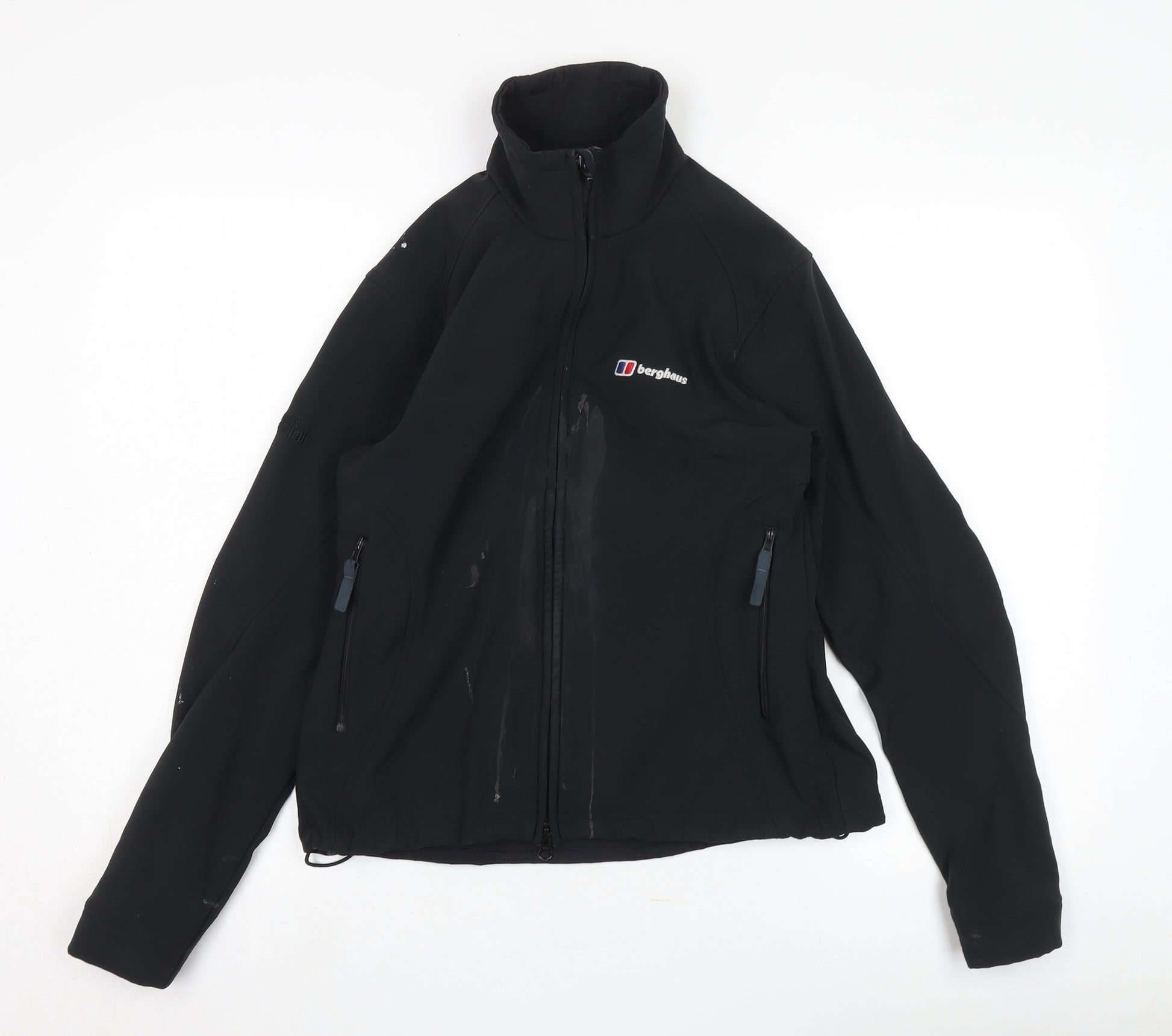 Explore the great outdoors with this stylish and practical Berghaus Women's Soft Shell Jacket. Designed in a sleek black colour, it features a regular fit suitable for any adventure or casual outings. This mid-length jacket is made from a durable blend of nylon and polyurethane, providing a water-resistant shell that protects against the elements. Ideal for all seasons, it keeps you comfortable with its breathable softshell fabric. Stay organised with the zipped pockets, and enjoy the convenience of the full zip closure. Accentuated by the signature Berghaus logo, this jacket is perfect for casual travel or those who enjoy outdoor-themed activities. Despite some visible marks and wear, which contribute to its character, this jacket retains its functional quality, offering reliability for your journeys. Machine washable for easy care, it’s ready for spontaneous adventures whenever you are. Enhance your outdoor collection with this iconic piece from Berghaus, combining functionality with effortless style.
