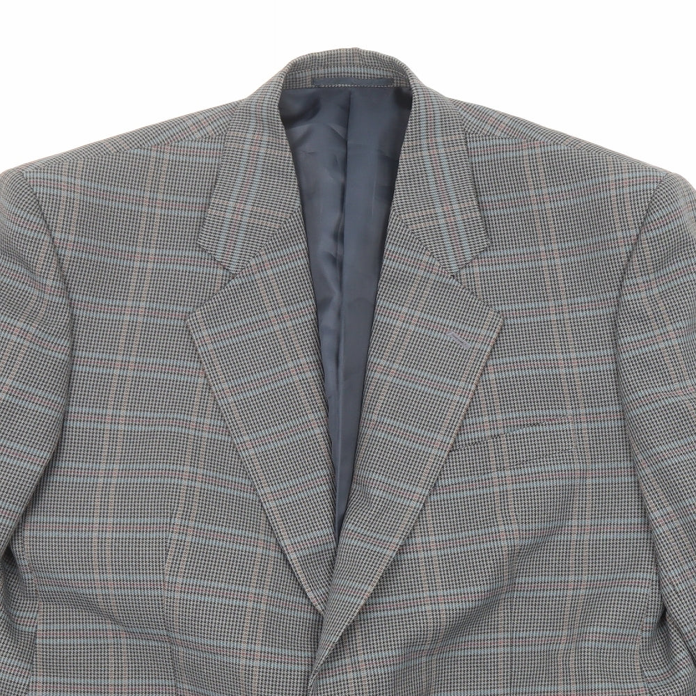 Mens Grey Plaid Viscose Jacket Blazer Size 42 Regular