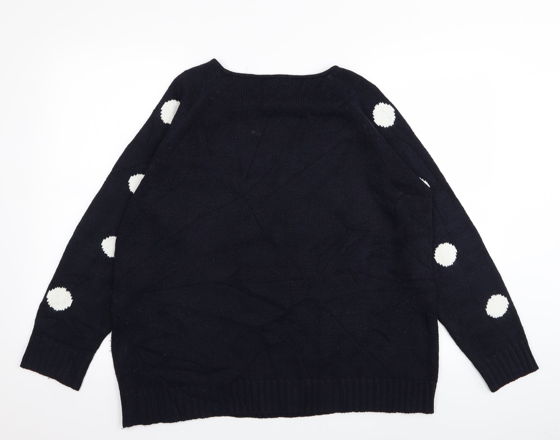 Womens Blue Polka Dot Pullover Jumper Size 18