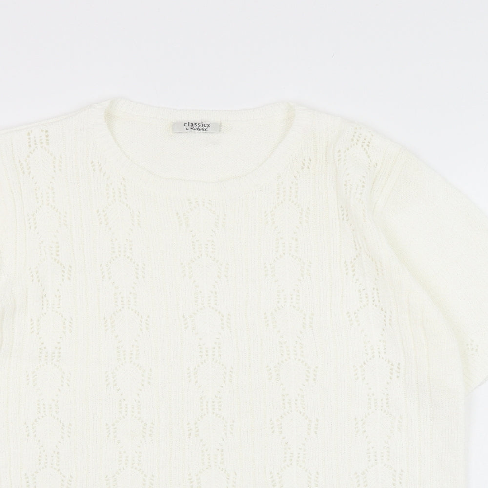 Womens White Round Neck Acrylic Pullover Jumper Size 10