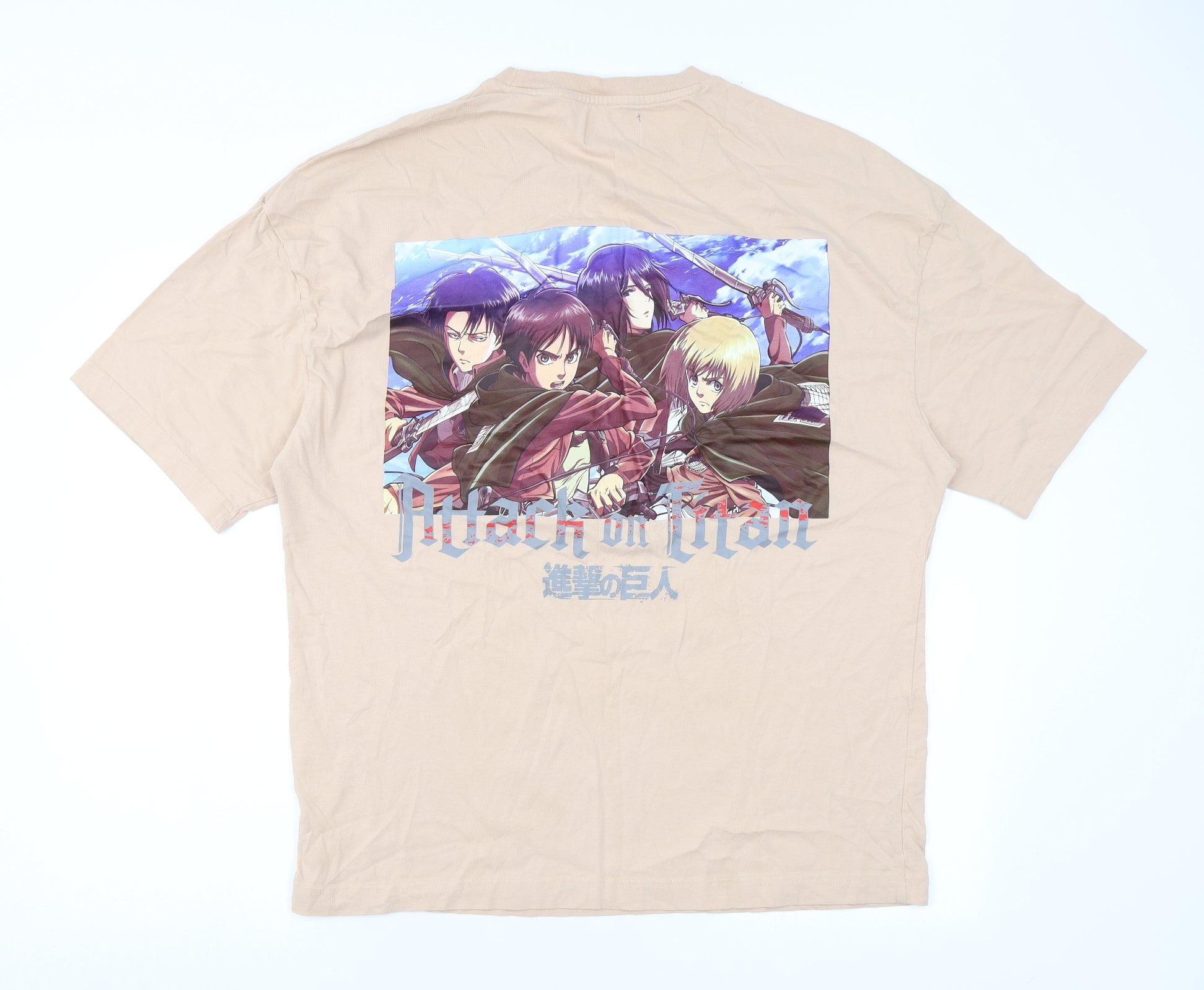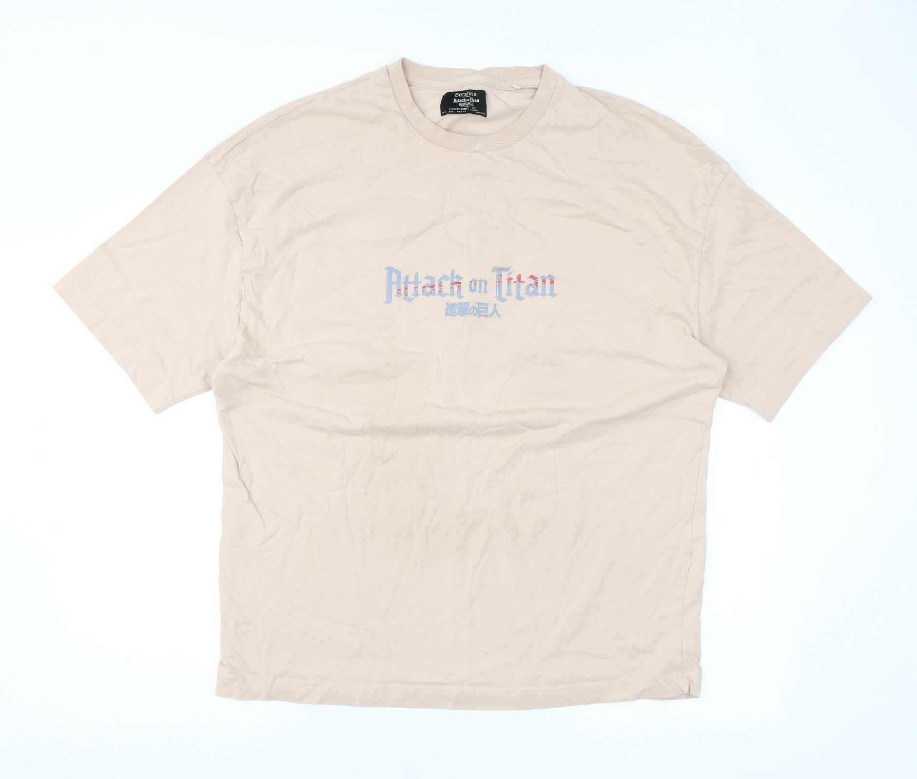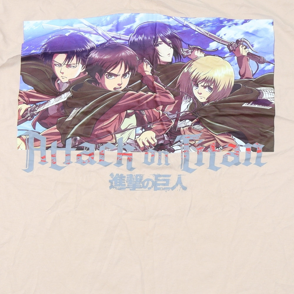 Mens Beige Cotton T-Shirt Size L Round Neck - Attack On Titan, Anime