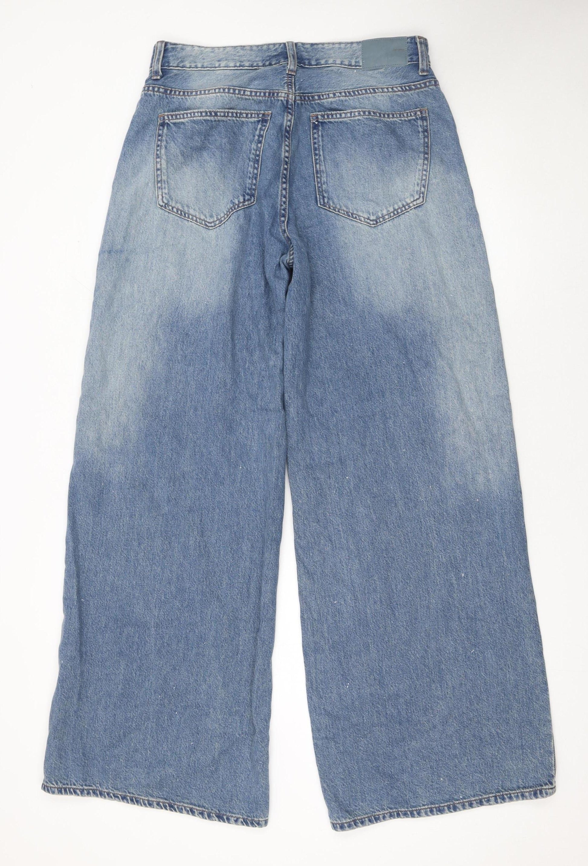 These Bershka men's jeans combine a relaxed contemporary cut with timeless denim appeal. Crafted from 100% cotton, they offer durability and breathability, perfect for everyday wear across all seasons. The medium blue wash lends a versatile casual look that pairs well with simple tees or smarter shirts. Designed in a wide-leg style, these jeans deliver a fashion-forward silhouette that offers comfort and easy movement without compromising on shape. Made with a mid-rise waist and a classic five-pocket design, they retain all the functional details you would expect. A sturdy button closure enhances the traditional denim construction, while the stitched seams ensure longevity and structure. The soft but substantial denim fabric has gentle fading and texture variation across the legs, adding natural character and a slightly vintage tone to its appearance. The jeans have been made to high quality standards in Bangladesh by Bershka, known for delivering on-trend, quality pieces at an affordable price. This pair presents in excellent condition with only minimal signs of gentle use, showing no obvious damage or flaws. Perfect for anyone seeking a stylish yet practical pair of jeans suitable for daily wear or relaxed occasions. With their easy-care, machine-washable denim and laid-back fit, these jeans are equally suited to relaxed weekends and casual evenings out. A dependable addition to any man’s wardrobe, versatile enough to complement trainers or boots alike, these Bershka wide-leg jeans are a contemporary essential offering both comfort and style in one piece.