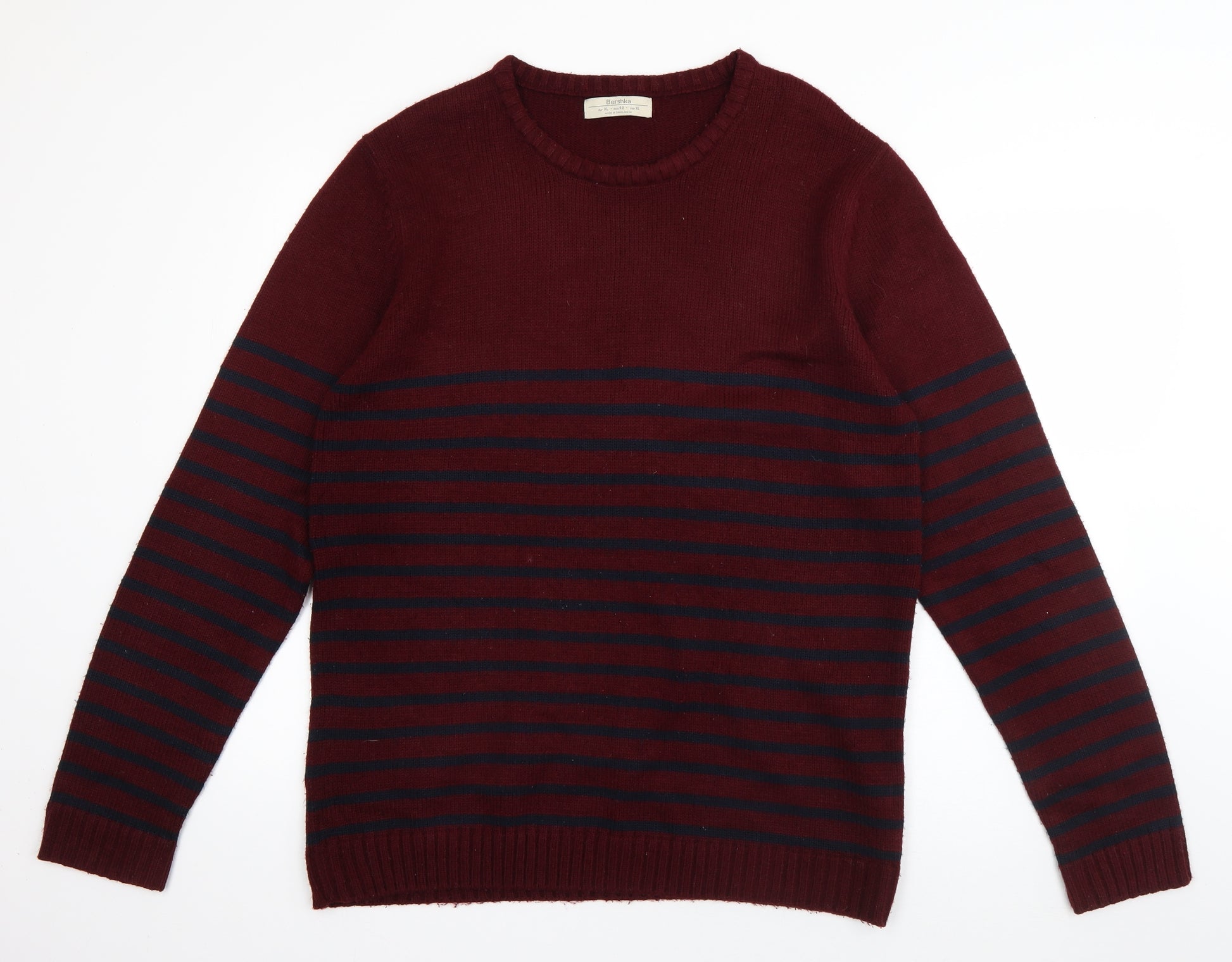 Mens Red Round Neck Striped Acrylic Pullover Jumper Size XL