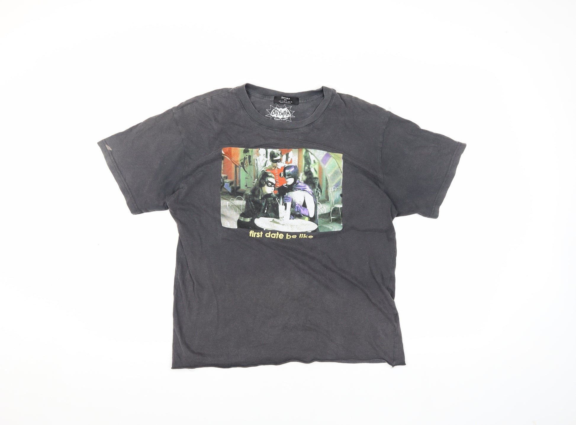 Step into the world of Gotham with this stylish Bershka Unisex T-Shirt. Featuring a classic Batman graphic, this T-shirt is perfect for comic enthusiasts and fans of the iconic superhero. The black colour adds versatility, making it easy to pair with jeans or shorts for a laid-back casual look. Crafted from 100% cotton, it ensures breathability and comfort all day long. The regular fit and classic crew neckline make it suitable for all body types, while the short sleeves provide ease of movement. This T-shirt is part of the BSK collection, showcasing a blend of youthful design and contemporary charm. Whether you're out for a casual day or planning to chill with friends, this Batman-themed T-shirt is an excellent addition to your wardrobe. Bring a hint of superhero flair to your outfits without compromising on comfort and style. With slight fading adding to its vintage charm, this piece promises to be a favourite in your clothing lineup. Durable and easy to care, this Tee can be machine washed, making it a practical choice for everyday wear. At an affordable price, it’s a fantastic deal for any comic book lover looking to make a statement. Grab yours now!