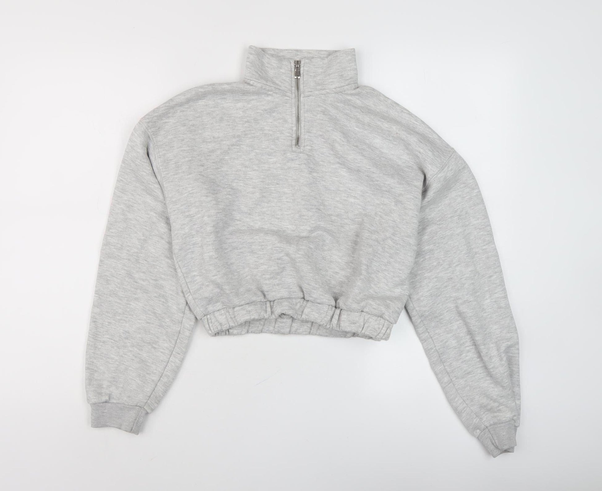 Elevate your casual wardrobe with this stylish grey sweatshirt from Bershka. Designed for women, this sweatshirt features a chic high neckline and a convenient 1/4 zip closure, offering both comfort and style. It is crafted from a soft blend of cotton and polyester, ensuring a cosy and breathable fit for all seasons. The regular fit and long sleeves make it perfect for layering during cooler days, while its no-pattern design adds a touch of simplicity and elegance. Ideal for casual outings, this versatile piece can easily be paired with jeans or leggings for an effortlessly chic look. Whether you're heading to a relaxed gathering or simply lounging at home, this sweatshirt promises to be a comfortable and fashionable choice. With its excellent condition, this item shows no visible wear or damage, making it a must-have addition to your casual wear collection. Don't miss the chance to own this functional and trendy sweatshirt at an attractive price.