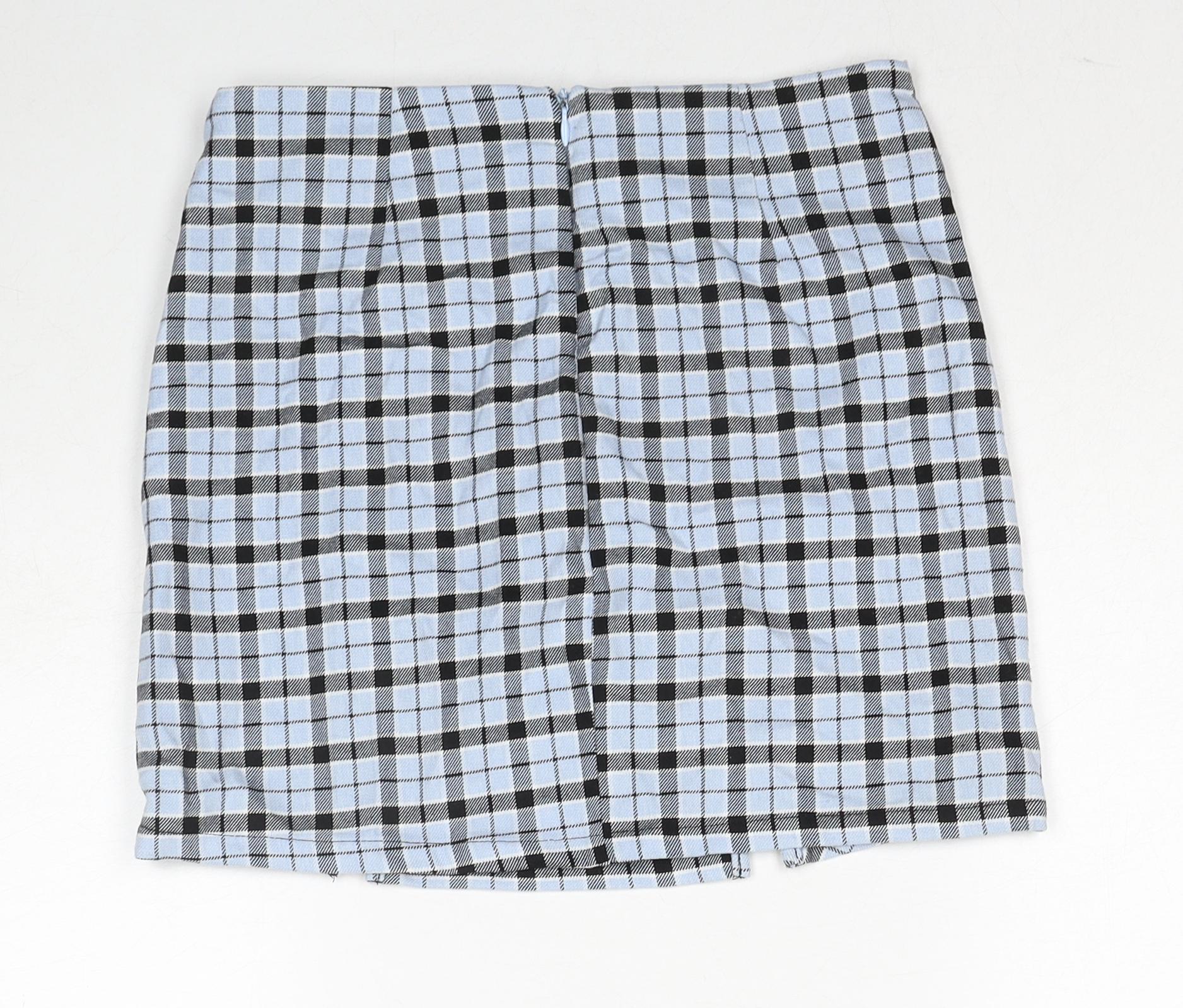 Womens Blue Plaid Polyester A-Line Skirt Size S Zip