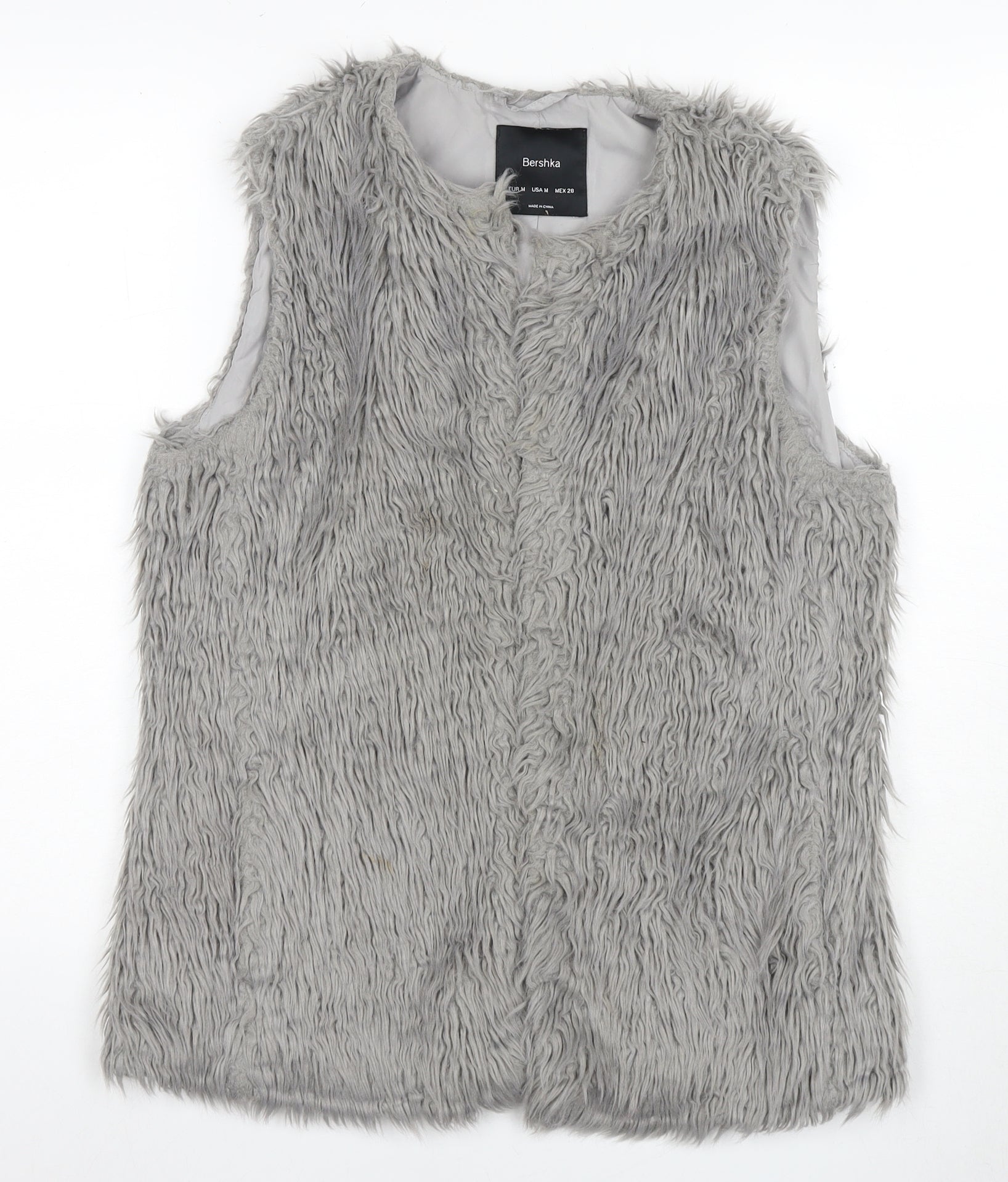 Step into chic comfort with this Bershka Women's Faux Fur Waistcoat. Crafted for those who appreciate style and warmth, this waistcoat is an ideal pick for the cooler months, designed to accompany your autumn and winter ensembles seamlessly. Its plush faux fur exterior in a versatile grey shade exudes a touch of elegance while maintaining an edgy appeal. The waistcoat features a sleeveless design, offering a blend of modern aesthetics and classic comfort, perfect for layering over your favourite tops or dresses. Made for effortless wear, it has a mid-length cut that pairs beautifully with jeans, skirts, or trousers, making it a versatile addition to any wardrobe. The regular fit ensures a comfortable, snug feel, embracing your form while allowing for easy movement throughout the day. Constructed with a durable polyester lining, this piece is machine washable, ensuring easy maintenance and longevity. Suitable for casual occasions, whether you're heading out for a relaxed day with friends or a laid-back evening excursion. The waistcoat is sized Medium and caters to those who prefer a classic fit without compromising on style. Embrace the functional fashion of Bershka with this must-have wardrobe staple that promises both warmth and flair. Perfect for fashion-forward individuals looking for a cozy yet stylish outerwear piece, this waistcoat will elevate your seasonal wardrobe effortlessly.