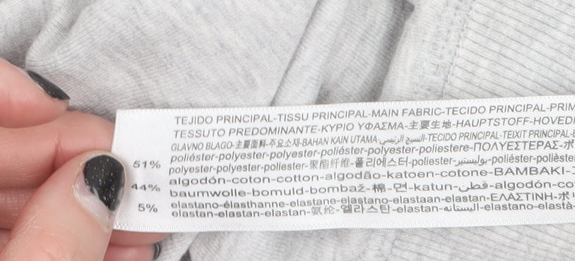 Refresh your casual wardrobe with these stylish grey flared sweatpants from Bershka, crafted for women seeking all-day comfort with a modern touch. Made from a soft and stretchy jersey blend of 51% polyester, 44% cotton, and 5% elastane, these trousers deliver both breathability and flexibility—perfect for lounging, travel, or casual outings. The mid-rise fit and elastic waistband ensure a flattering and secure silhouette, staying comfortable while maintaining style. The full-length legs finish in a mild flared shape, offering a touch of retro-inspired design that pairs beautifully with trainers or chunky boots. Their minimalist grey tone makes them incredibly versatile, easily matched with hoodies, jumpers, or fitted tops through all seasons—ideal for layering during spring and autumn, or for cosy wear through winter. The jersey fabric provides a comfortable drape and softness against the skin while maintaining resilience through everyday wear. Designed by Bershka, a brand known for fun, youthful, and effortless fashion, these trousers carry a relaxed yet trendy appeal perfect for modern women. With a breathable, stretch-enhanced blend, they deliver comfort that moves with you whether you're running errands, taking a walk, or enjoying downtime at home. These excellent-condition trousers show only minimal wear and retain their great shape and texture. Their machine-washable finish ensures easy care without fuss. For a chic and dependable addition to your everyday clothing—these Bershka grey flared sweatpants are a must-have staple that bring together casual style with timeless simplicity. Step into confident comfort and understated fashion today with these effortlessly wearable trousers.
