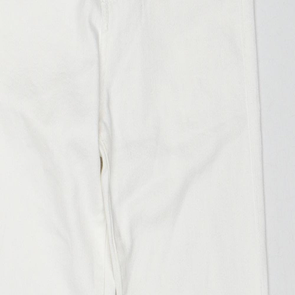 Womens White Cotton Flared Jeans Size 8 Regular Zip - Distressed Hems