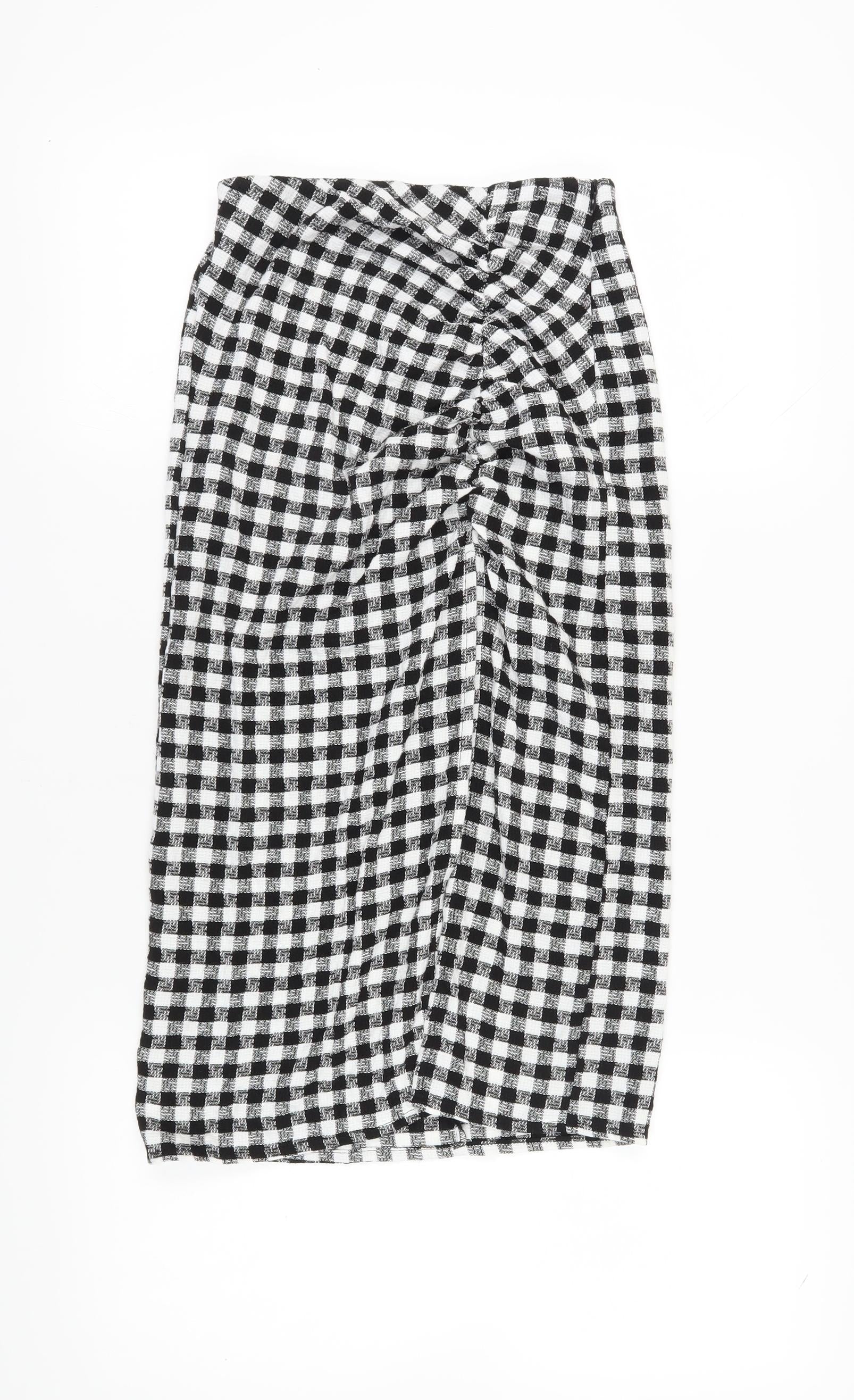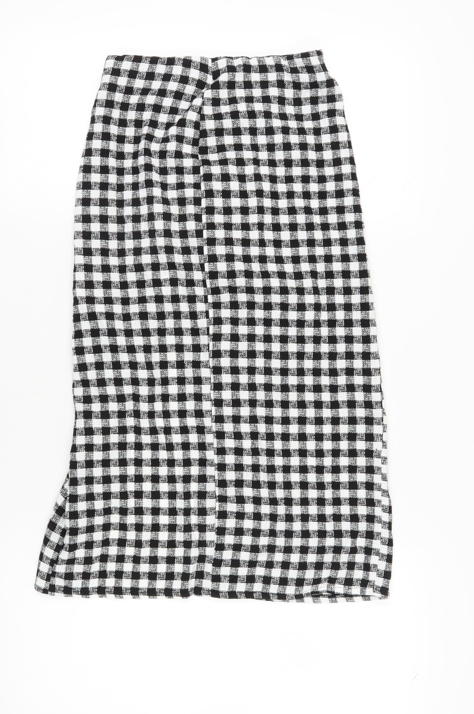 This Bershka Women's Midi Skirt offers a chic and timeless aesthetic with its classic black and white check pattern. Perfect for casual outings or smart-casual settings, this skirt is a versatile addition to any wardrobe. The skirt features a midi length and straight pencil style, making it suitable for all occasions and ideal for any season. Made from a comfortable blend of polyester, viscose, and elastane, it ensures both style and comfort. Whether you're strolling through the park or attending a casual gathering, this skirt complements various looks effortlessly. Pair it with a fitted top and ankle boots for a modern and trendy appeal. Available in a size XS, it offers a flattering fit that enhances your silhouette. Embrace effortless elegance and contemporary design with this beautiful Bershka skirt. A must-have staple for your collection, it's an investment in style that won't go unnoticed.