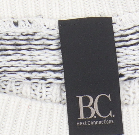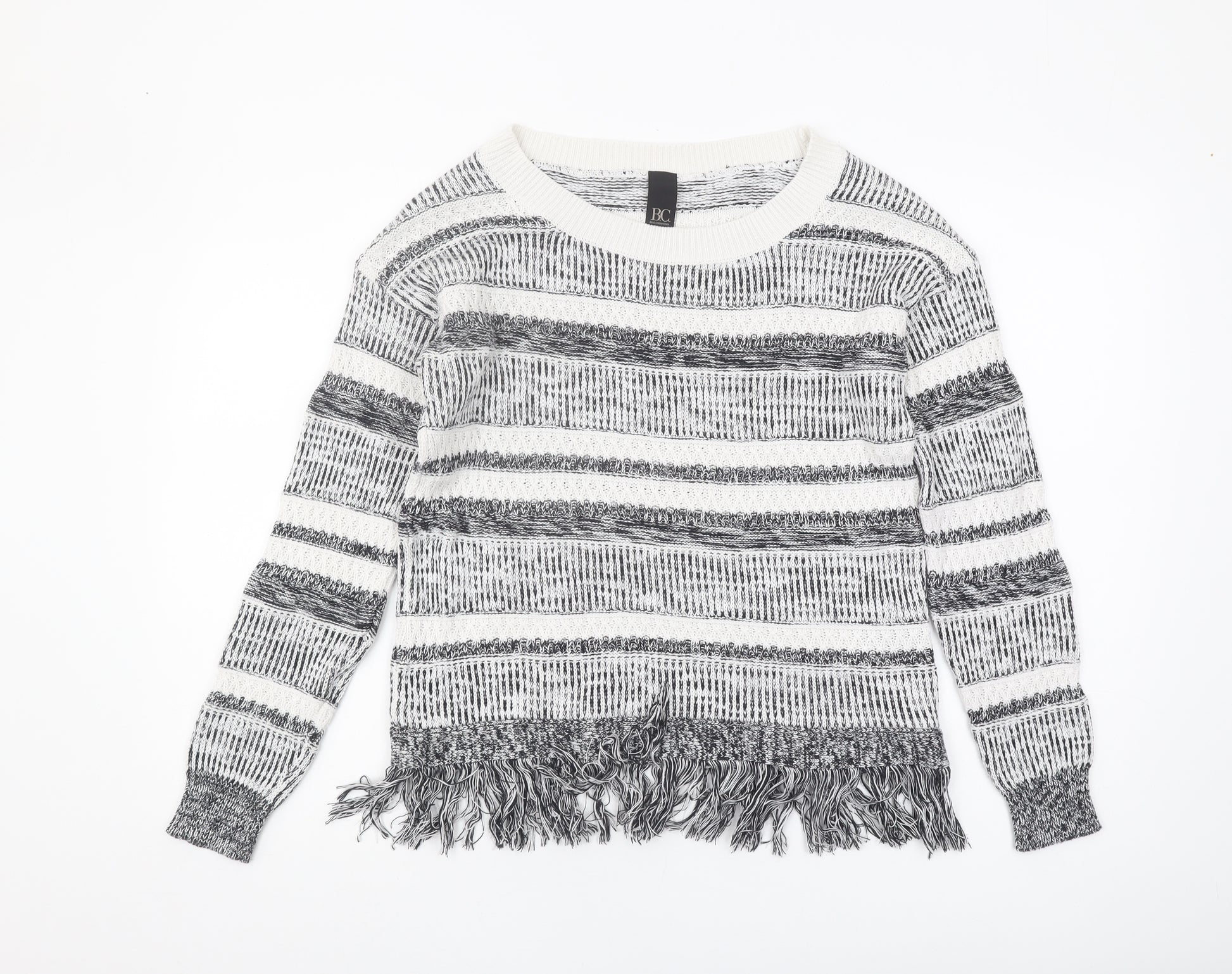 Elevate your wardrobe with this stylish Women's Striped Pullover Jumper from Best Connections. Crafted with a breathable blend of cotton and acrylic, this jumper offers a comfortable fit that's perfect for those cooler Autumn and Winter days. The casual, yet timeless design features an open-knit pattern with fringe accents, adding a touch of flair to your everyday look. Intended for women, this multicoloured jumper boasts a regular fit, making it ideal for layering over shirts or under jackets. With its crew neckline and long sleeves, it provides both warmth and fashion versatility. Whether you're heading out for a casual day or cozying up indoors, this fashion piece adapts to your lifestyle effortlessly—a must-have for any wardrobe.