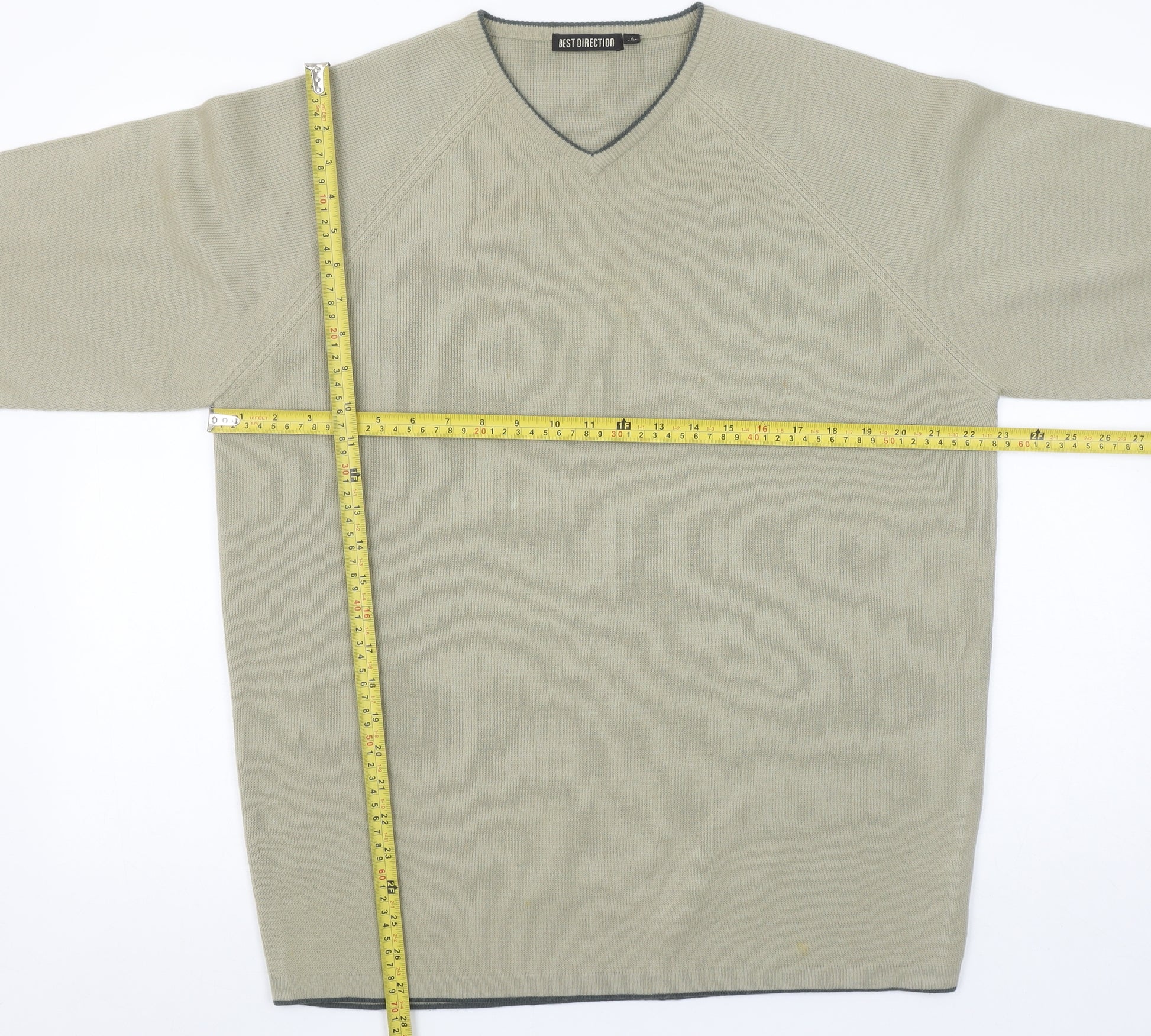 This Best Direction men's jumper offers a timeless and versatile design perfect for layering through cooler seasons. Crafted from a comfortable mix of 70% acrylic and 30% wool, it delivers warmth without heaviness, making it ideal for everyday wear. The soft knit fabric feels gentle against the skin, while its tight-knit construction adds durability and shape retention. Presented in a neutral beige tone, the jumper coordinates easily with a variety of outfits, from jeans for a laid-back weekend look to chinos for a smarter casual style. The V-neckline flatters the frame and allows easy pairing with collared shirts or worn solo for a relaxed approach. Subtle dark edging detail brings a refined finish to the cuffs and neckline. Designed for men in a size L with a regular fit, it provides comfort and freedom of movement for workwear or leisure. Suitable for autumn, winter, and early spring, the lightweight yet insulating nature of the fabric keeps you comfortable in variable conditions. This long-sleeve jumper remains breathable and adaptable, offering both practicality and understated sophistication. The overall condition is very good, with only a light mark on the front noted from close inspection, showing gentle signs of previous use but remaining in excellent wearable condition. Machine washable for easy care, this jumper ensures long-lasting wear with minimal effort. Whether for casual outings, workwear layering, or a weekend staple, this jumper is a smart addition to any wardrobe. Add understated style and cosy comfort to your collection with this well-made beige wool-blend jumper from Best Direction — a classic piece that balances quality construction and versatile styling perfectly. Ideal for those seeking a comfortable and stylish jumper suitable for multiple occasions throughout the year.