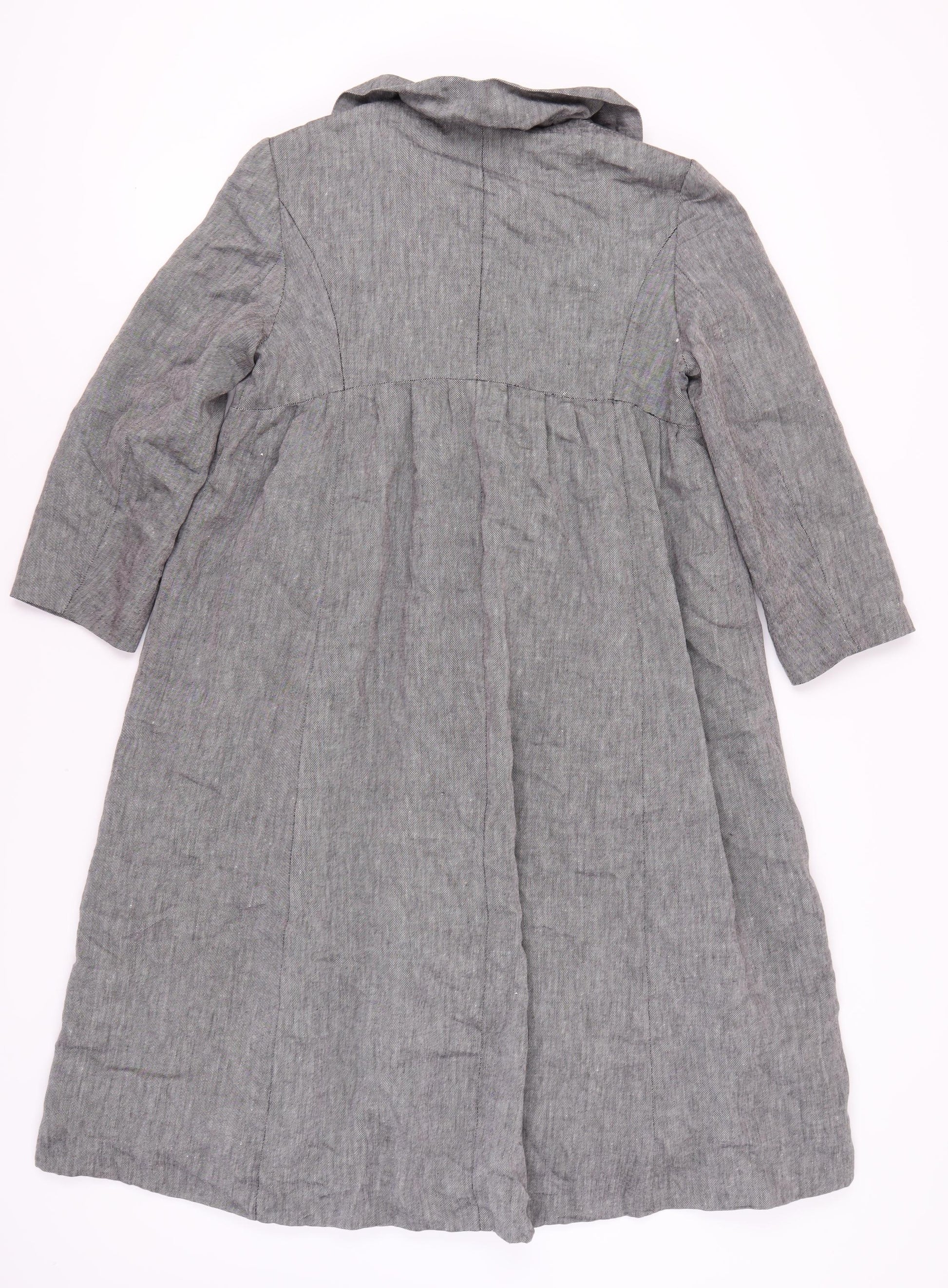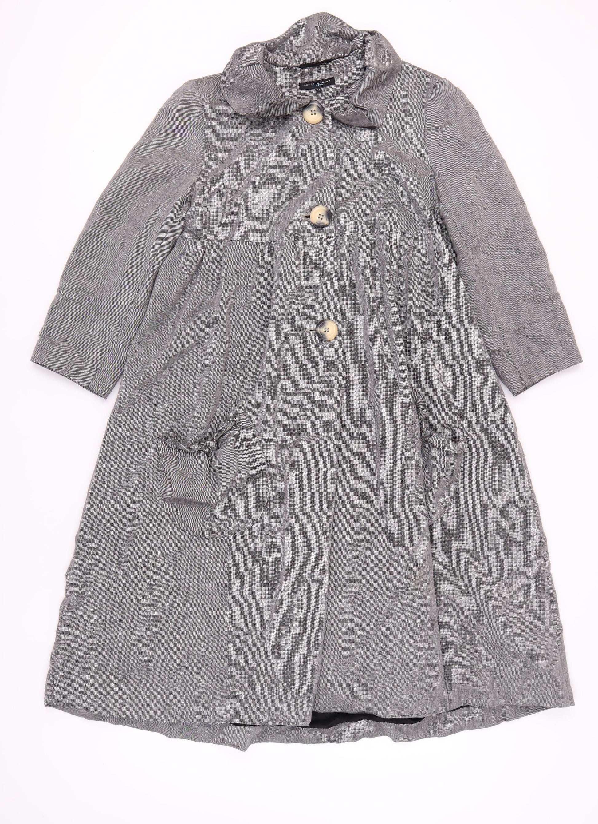 This elegant Grey coat from Betty Jackson Studio is perfect for women looking to stay stylish and comfortable in the cooler months. Made from a smart blend of Linen, Polyester, and Viscose, it offers breathability and durability. The long coat design with button closure adds a touch of sophistication, making it ideal for casual outings or a relaxed day at the office. The acetate lining enhances comfort, while the understated button accents bring a classic feel. Available in size 14, this coat is a must-have for any fashion-conscious wardrobe. Perfect for spring and autumn, it pairs wonderfully with a variety of outfits and is sure to keep you looking polished.