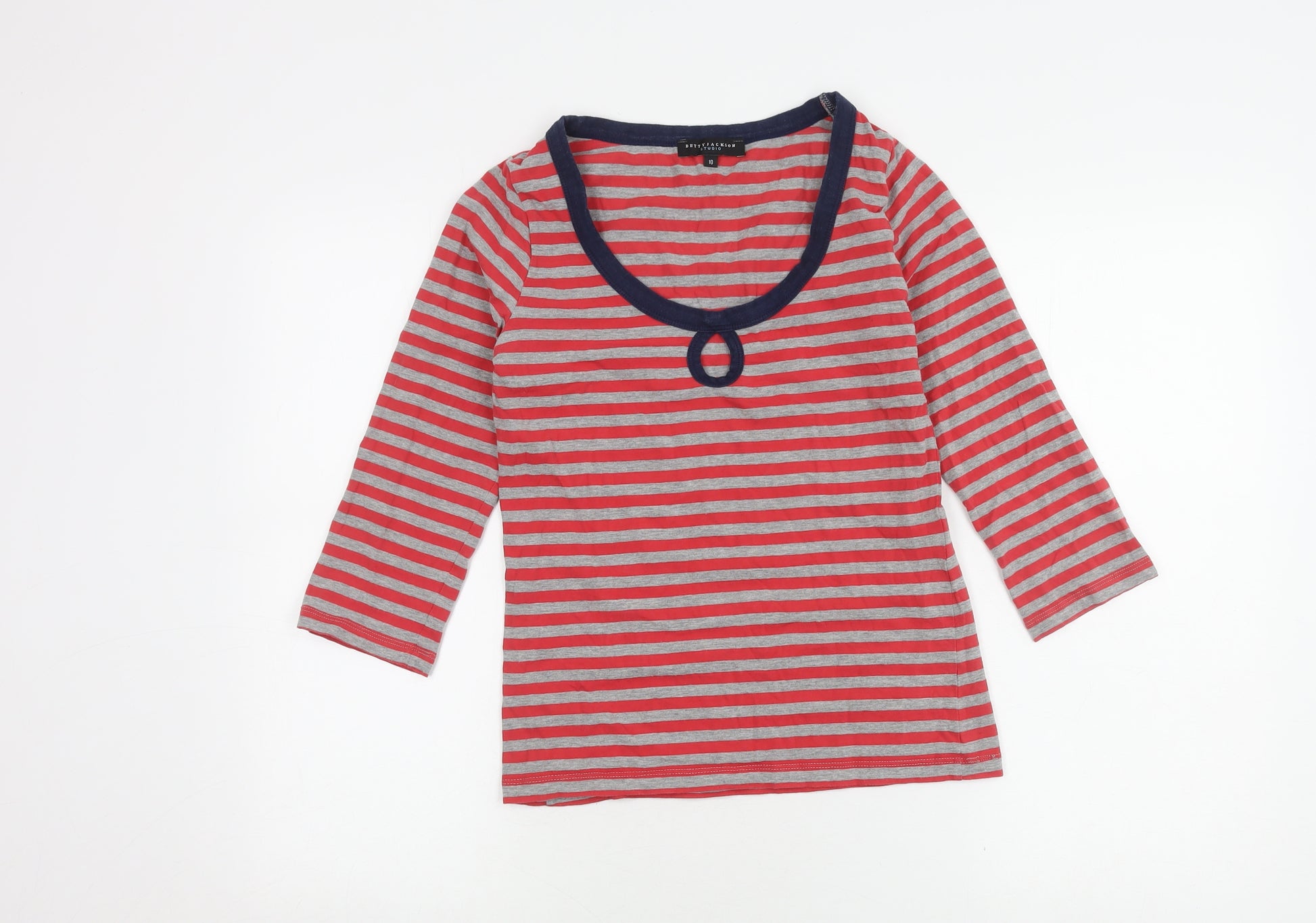 Introducing a chic and versatile addition to your wardrobe, this Betty Jackson Studio Women's Red Striped T-Shirt effortlessly combines style and comfort. Designed with a flattering 3/4 sleeve length, this top is perfect for casual outings or a day at the office. Crafted from 100% cotton, it ensures maximum comfort and breathability, making it ideal for any season. The bold red stripes add a pop of colour to your ensemble, while the round neck design offers a timeless appeal. Pair it with jeans or a skirt for a stylish look that transitions from day to night with ease. The T-shirt is well maintained and free from any visible flaws, ensuring you look polished and put-together on any occasion. Embrace the effortless elegance of Betty Jackson Studio with this wardrobe staple, designed to make you feel confident and stylish wherever you go.