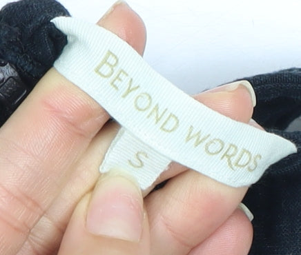 Step out in style with this chic Beyond Words dress, perfect for your next party or cocktail event. This stunning black dress in size Small exudes elegance and modern flair. Its knee-length cut with a unique cut-out style is designed to turn heads. Constructed from a high-quality blend of materials, including viscose, cotton, and linen, this dress offers both comfort and sophistication. The sleeveless, strapless design with a scoop neckline adds to the contemporary appeal, while the zip closure at the back ensures a flattering fit. Whether for an evening out or a fashionable gathering, this dress is the ideal choice. Its simplistic yet striking look makes it versatile for any occasion that calls for a touch of elegance. Don’t miss the opportunity to make this statement piece a staple in your wardrobe.