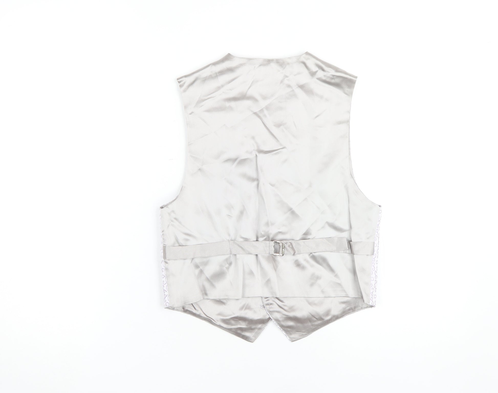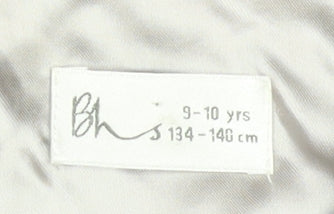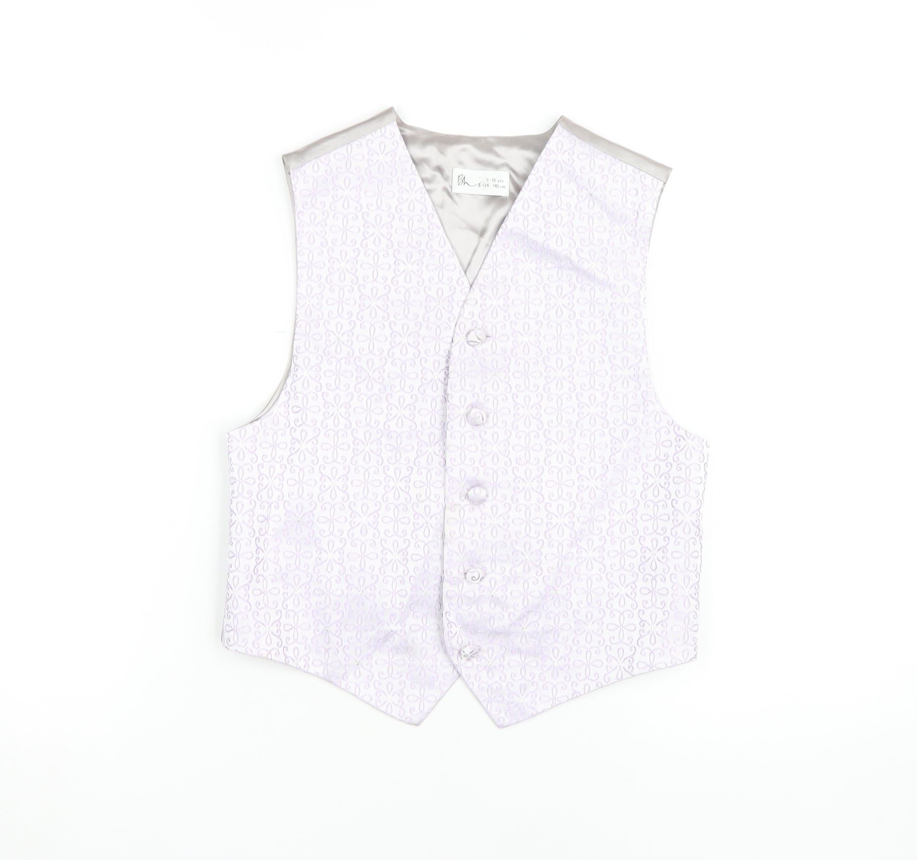 This elegant BHS boys’ waistcoat in a charming white colour is perfect for adding a touch of sophistication to any young gentleman's outfit. Crafted from a high-quality material blend, including 54% polyester, 40% viscose, and 2% nylon, this waistcoat ensures not only style but also comfort and durability. Designed for boys aged 9-10 years, it's an excellent choice for various formal occasions such as weddings, christenings, or any special event needing a touch of class. The waistcoat, with its acetate lining, provides a smooth fit and a refined finish, making it a great addition to any young boy's formal wardrobe. With its sleeveless design, it's perfect for layering over a dress shirt or under a blazer. While the original tags are not attached, it is in excellent condition, ready to make a standout appearance in any setting. Grab this stylish waistcoat for just £15.00 and enhance your child’s formalwear collection with this timeless piece.