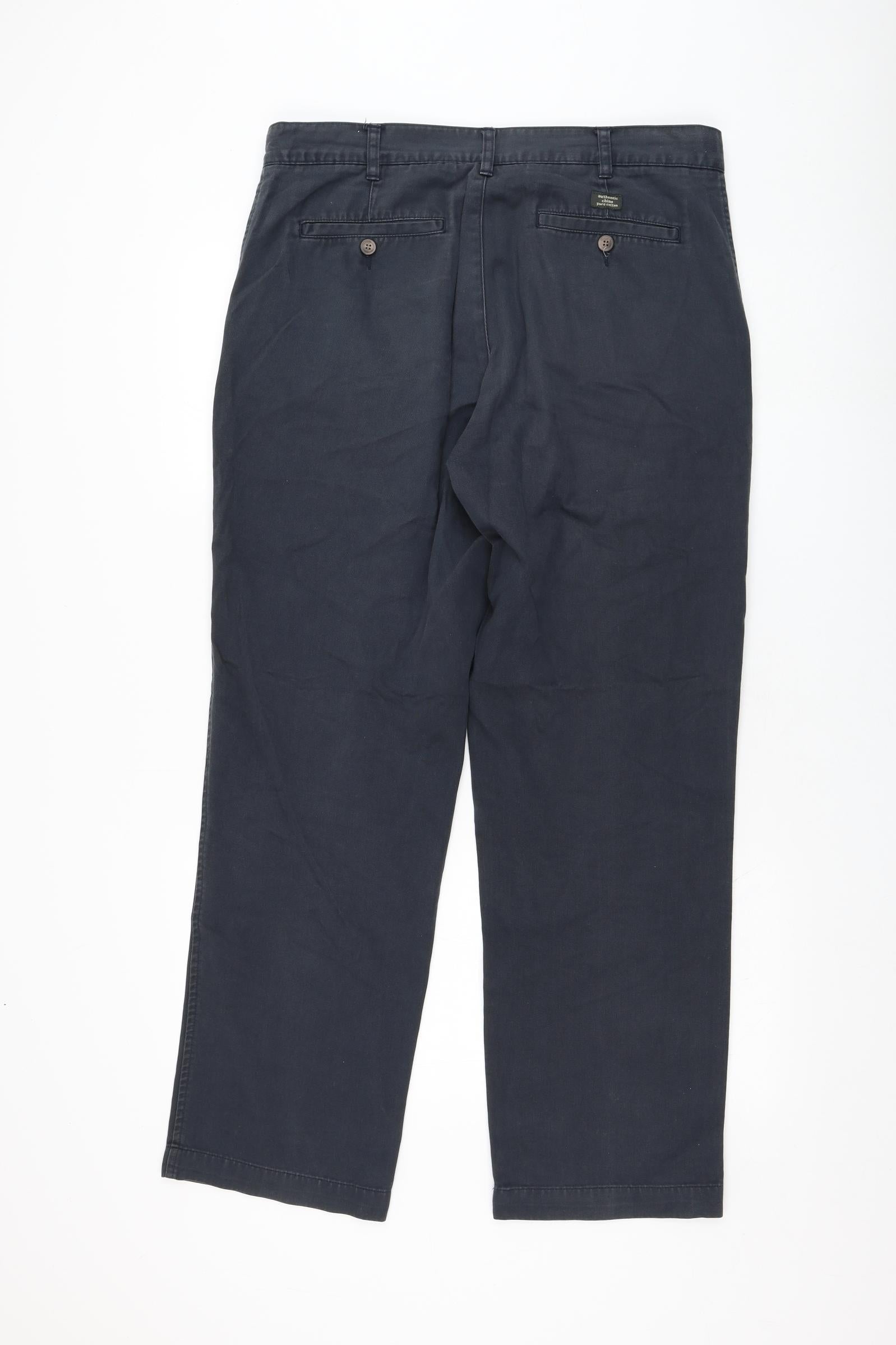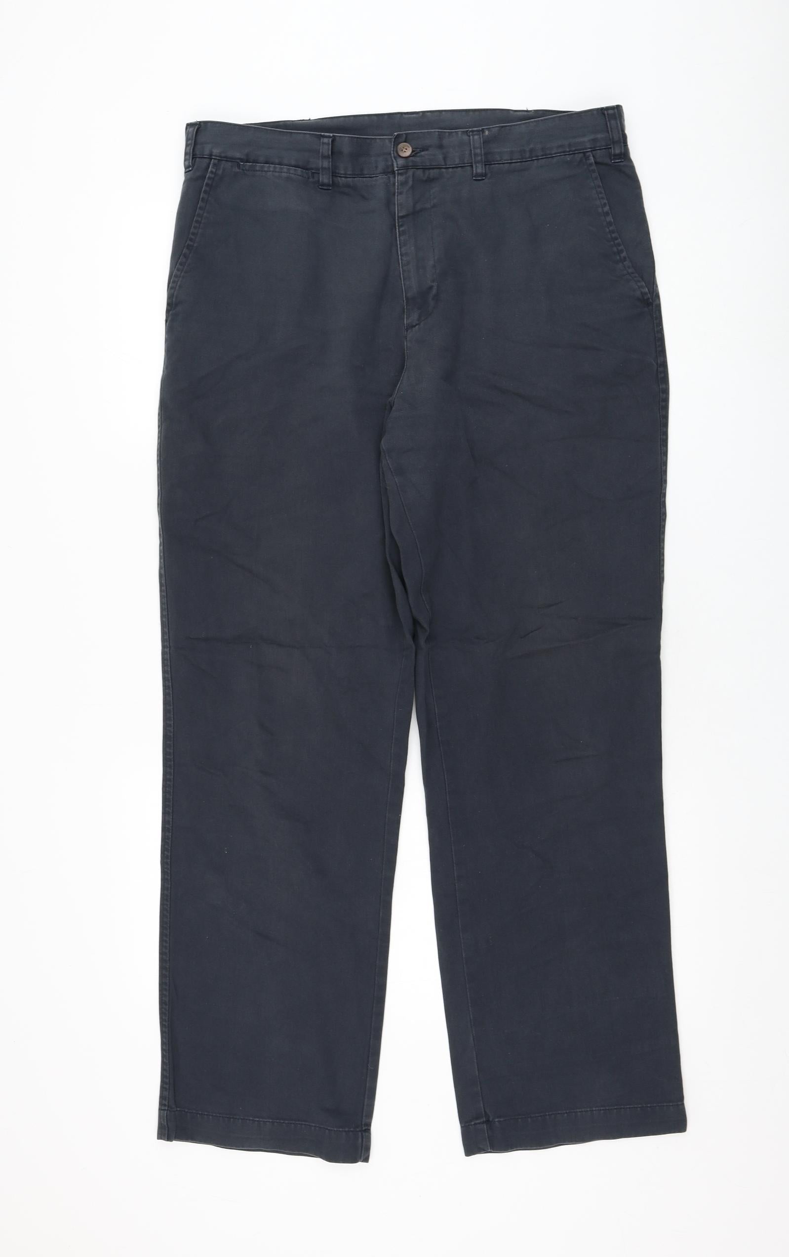 Mens Blue Cotton Chino Trousers Size 34 in L31 in Regular Zip