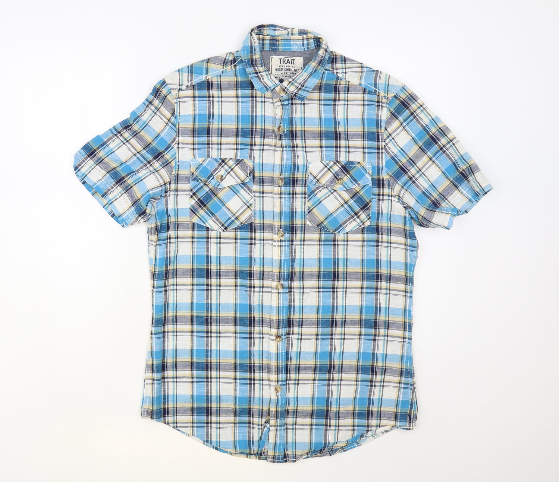 Regular price£12.50£1250Regular priceUnit price / perSale price £12.50 GBPRESERVED Mens Blue Plaid Cotton Button-Up Size S Collared Button
