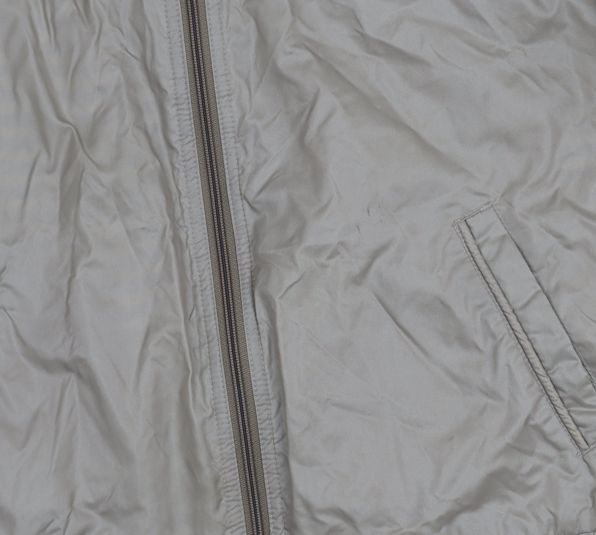 Discover effortless style with this BHS unisex adults' bomber jacket in a versatile beige hue. Ideal for transitional seasons, its lightweight nylon outer shell ensures comfort and practicality. This mid-length jacket features a secure full zip closure and handy pockets, making it as functional as it is fashionable. With durable acrylic and nylon lining, it’s perfect for cooler autumn and spring days. Tailored in a classic regular fit, it effortlessly suits casual occasions, while the long sleeves provide added warmth. Appearing in very good pre-owned condition with slight wrinkling, it’s priced attractively for those seeking quality and style without compromise.