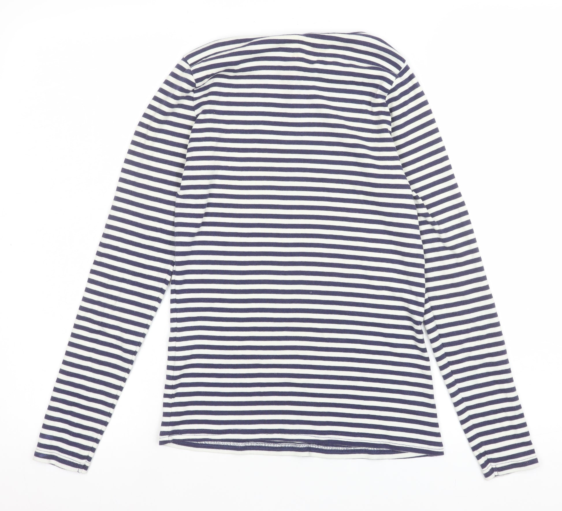 Women Navy White Striped Long Sleeve Jersey Top Size 10