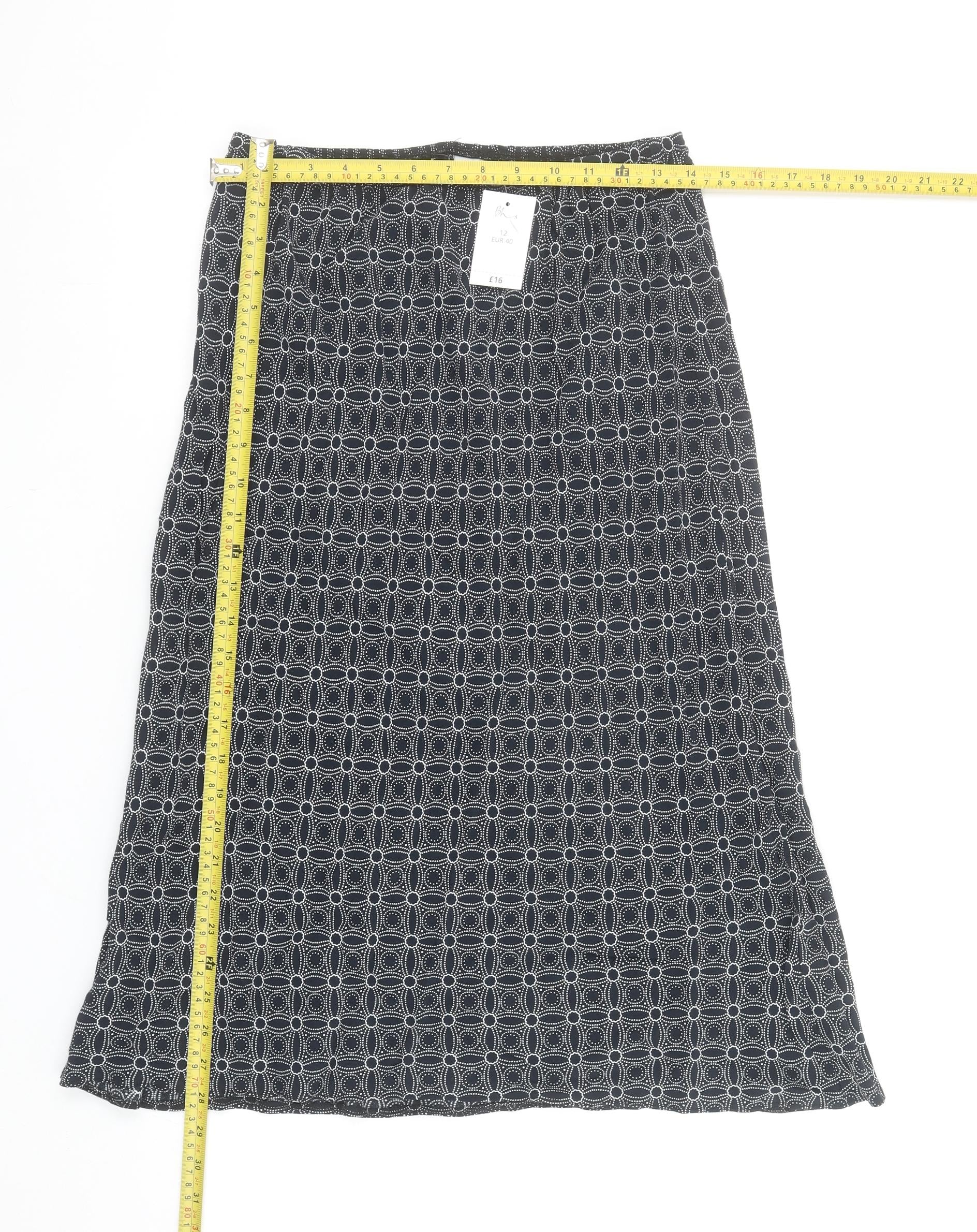 Women’s Black Geometric A-Line Midi Skirt Size 12