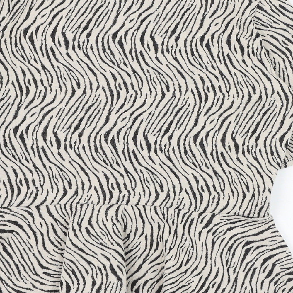 Womens Beige Animal Print Polyester Basic Blouse Size 12 Round Neck