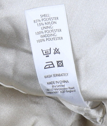 Elevate your outerwear collection with this chic beige parka coat from BHS, designed to ensure you step out in style and comfort. Crafted for women and perfect for casual outings, this coat brings a classic yet contemporary feel to any wardrobe. The full zip closure makes it easy to throw on, while the insulated polyester lining adds warmth and coziness, perfect for the chill of autumn and winter seasons.The coat comes in a flattering size 16 for a regular fit, ensuring ample room for layering over your favourite jumpers or tops during colder months. Long sleeves and a longer length offer better coverage against the elements, providing practical utility while maintaining a sleek silhouette.Constructed with durable materials—85% polyester and 15% nylon—this parka is as resilient as it is stylish. The coat includes functional features such as lined interior, handy pockets for keeping essentials close, and button accents that enrich its classic theme without overpowering your look.Machine washable, maintaining this coat is as effortless as wearing it. Despite being pre-loved, the coat remains in excellent condition with no signs of wear, making it an exceptional addition to your fashion ensemble. Whether matched with jeans and boots for a relaxed style or layered over formal attire for a sophisticated touch, this parka coat ensures you remain fashionable and warm.Step confidently into cooler months with this timeless piece, offering not just style but reliable comfort—a perfect choice for any casual occasion.