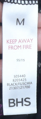 Introducing this delightful floral dress from BHS, perfect for adding a vibrant touch to your everyday wardrobe. Crafted from lightweight, breathable viscose, the dress ensures comfort throughout spring and summer days. Its stunning black base is adorned with a rich floral pattern in fuscia hues, making it an eye-catching piece for any casual occasion. Designed with a round neckline and sleeveless cap sleeves, it offers a classic silhouette that flatters every figure. The regular size medium fits comfortably, providing ease of movement and style. This dress falls beautifully to a length that can effortlessly transition from a day out with friends to a casual evening event. Ideal for those seeking a stylish yet easy-care garment, this dress is fully machine washable. Elevate your wardrobe with this versatile dress that combines elegance and practicality.