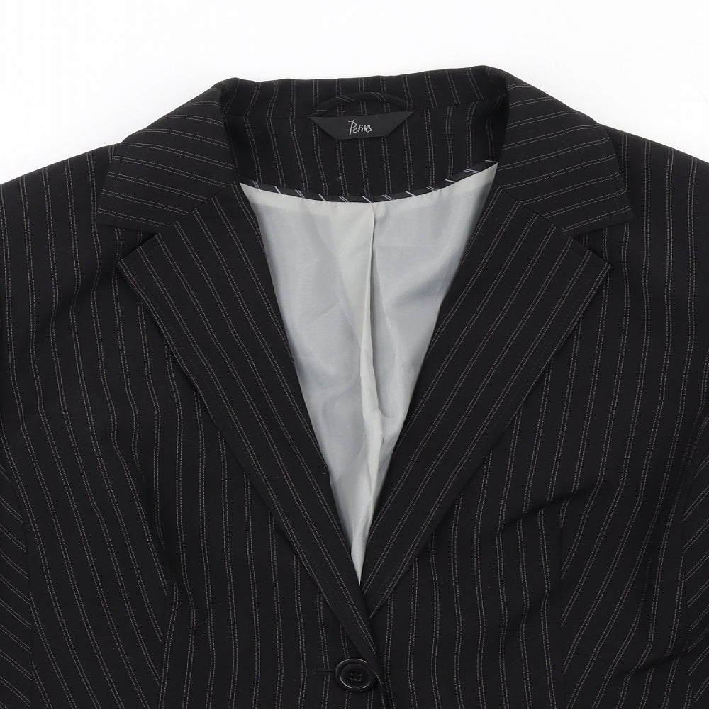 Womens Black Striped Polyester Jacket Blazer Size 20