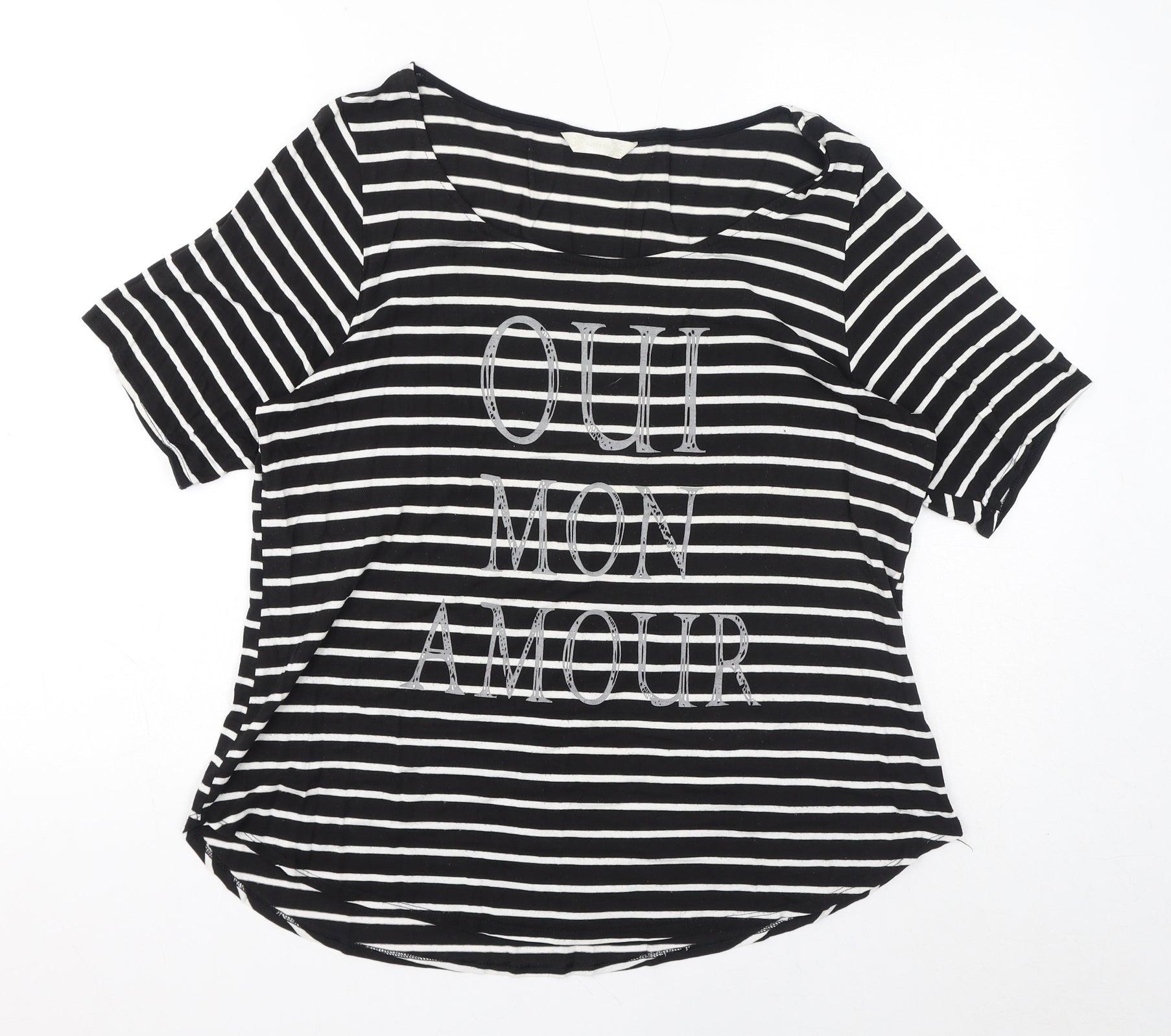 Womens Black Striped Viscose Basic T-Shirt Size 16 Round Neck - Oui Mon Amour