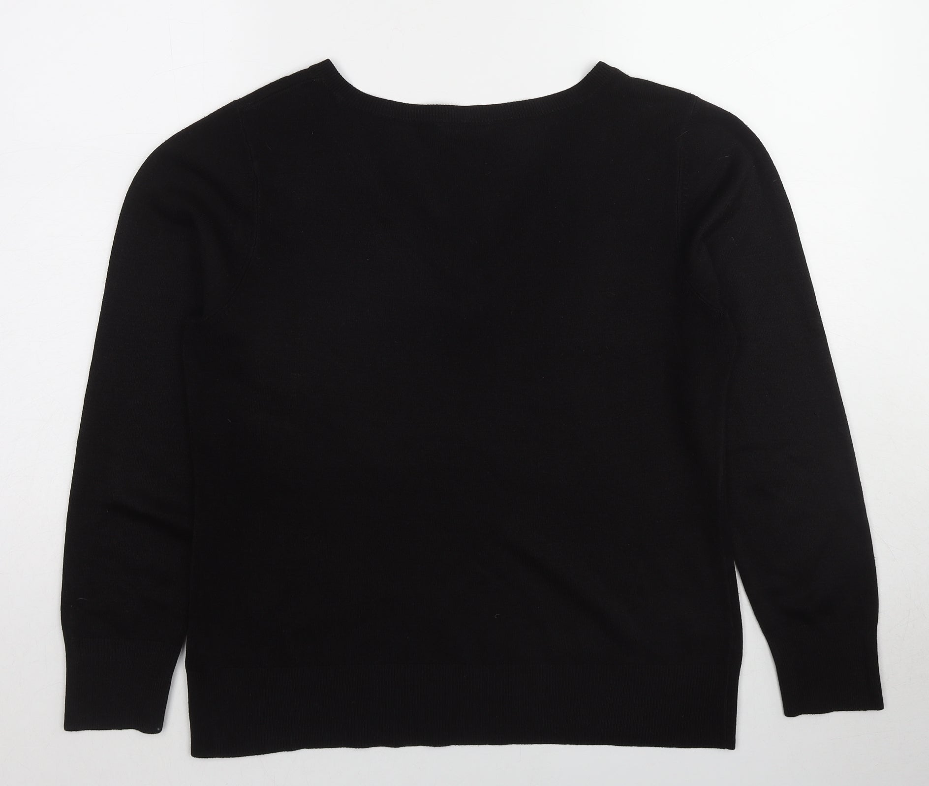 Womens Black V-Neck Acrylic Pullover Jumper Size 16