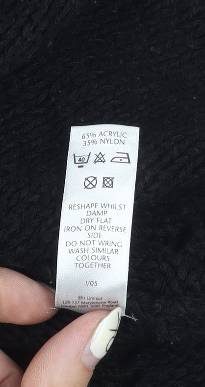 Discover the timeless elegance and versatility of this BHS Women's Black V-Neck Cardigan. Perfect for autumn and winter, this cardigan adds a touch of sophistication to any wardrobe with its stylish design and classic black hue. Crafted from a comfortable acrylic and nylon blend, it ensures warmth and durability, while maintaining a lightweight feel for everyday wear. The long sleeves and V-neckline offer a flattering silhouette that complements various outfits, making it an essential piece for both casual occasions and day-to-day wear. Accentuated by a single button fastening, this cardigan is ideal for layering over tops or dresses, providing endless styling possibilities. It's machine washable, ensuring easy care and maintenance, ready to be your go-to choice whenever you need an extra layer of comfort. With no visible signs of damage or wear, this cardigan is in excellent condition, showcasing BHS's reputation for quality and style. Update your wardrobe with this versatile piece that combines practicality with chic appeal, and enjoy the perfect blend of form and function.