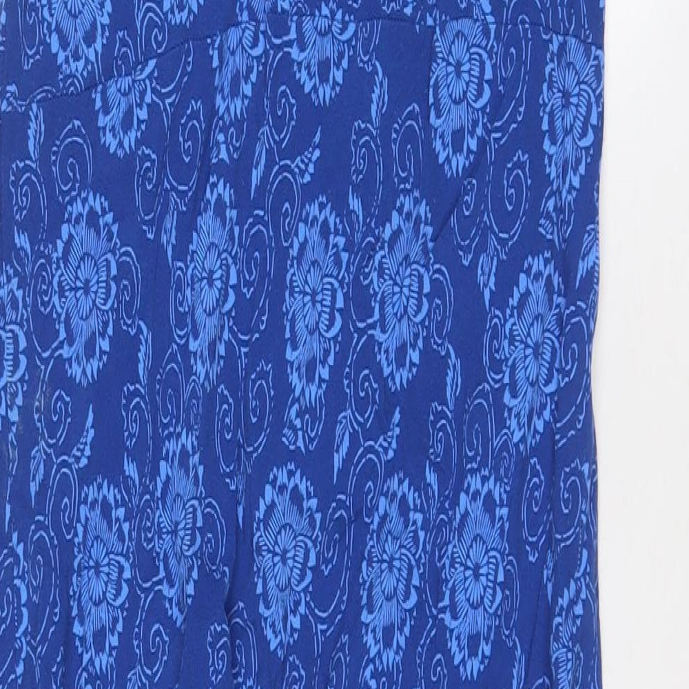 Marks and Spencer Womens Blue Geometric Viscose A-Line Size 14 V-Neck Pullover