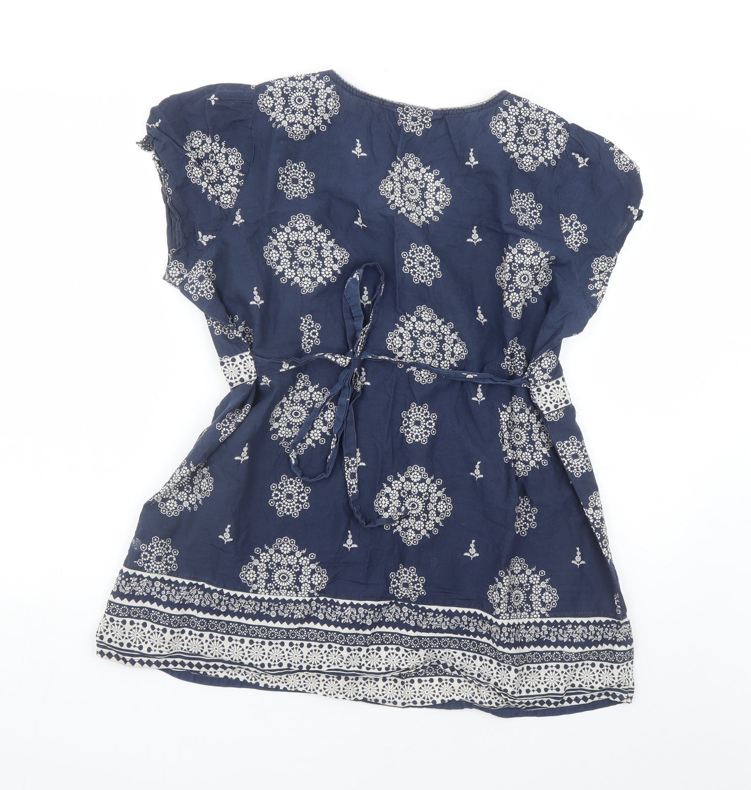 Womens Blue Geometric 100% Cotton Basic Blouse Size 20 V-Neck - Beaded Neckline