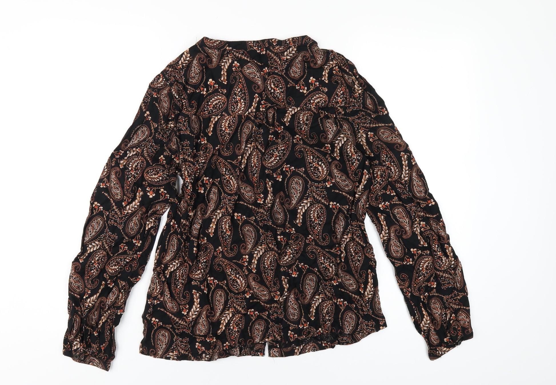 Womens Gold Paisley Viscose Basic Button-Up Size 12 Round Neck